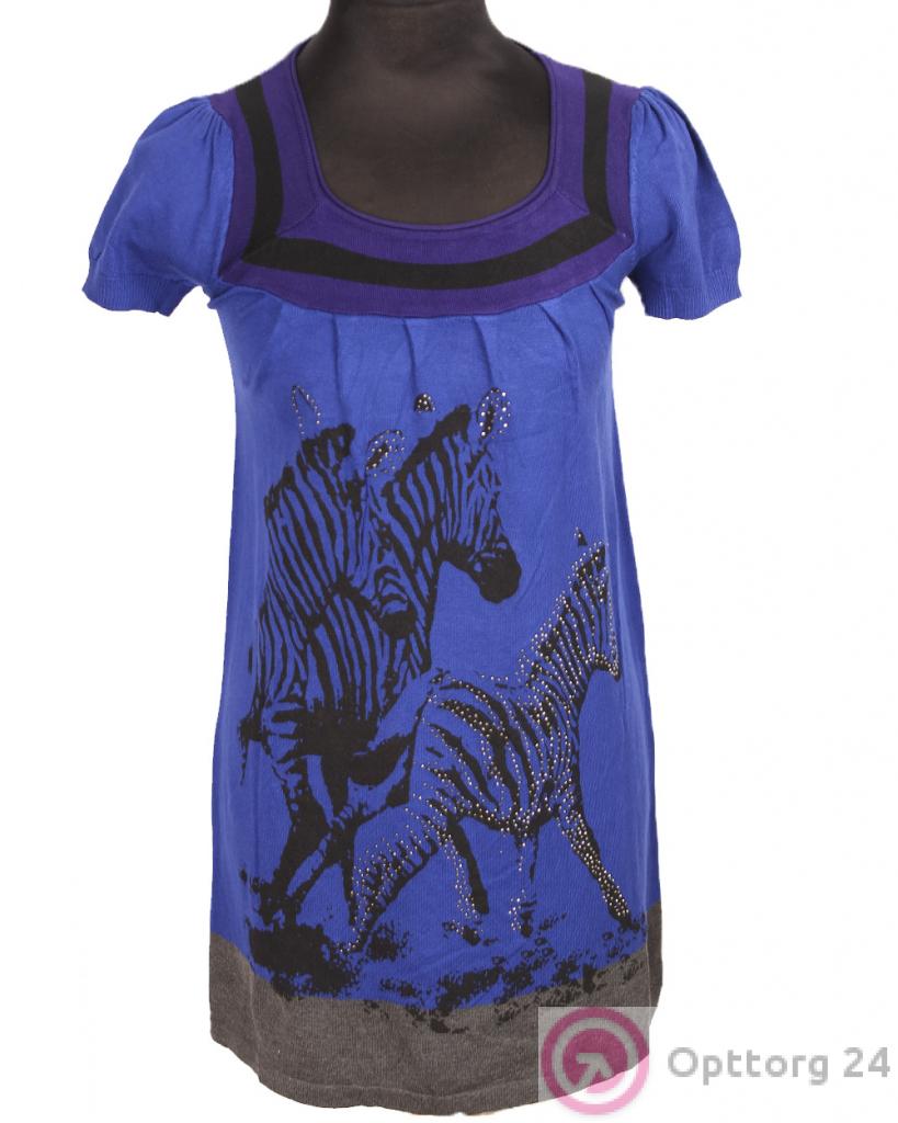Туника женская синего цвета с принтом в виде зебры. оптом