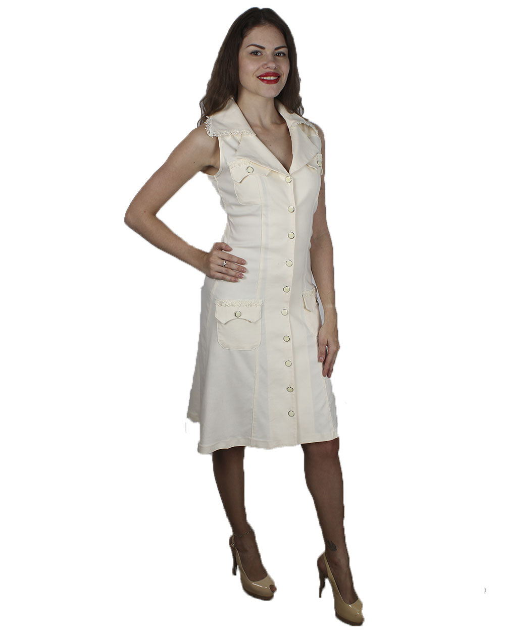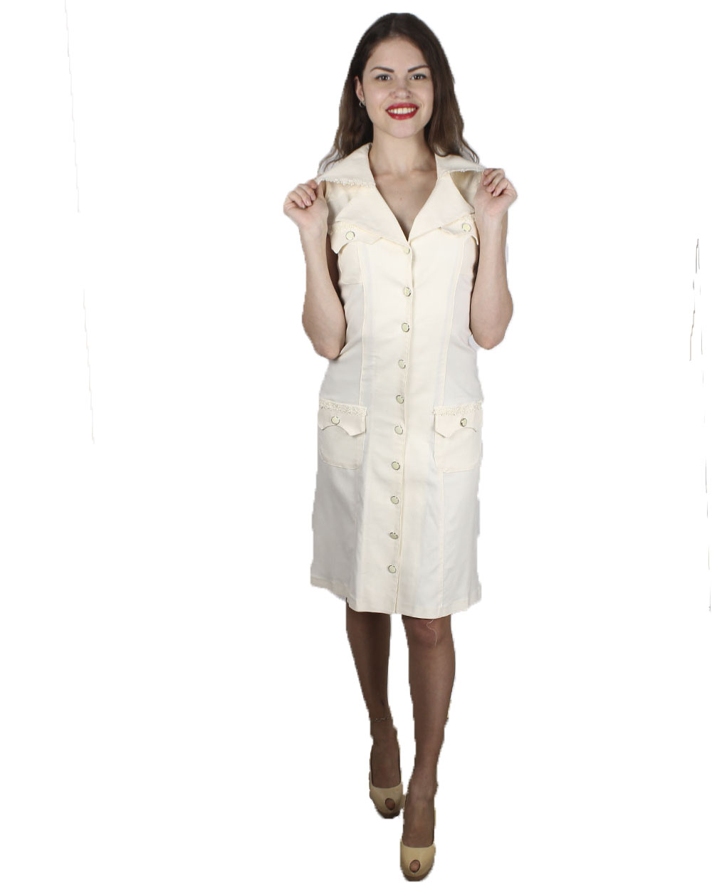 Платье женское белого цвета с пуговицами по всей длинне изделия и карманами.