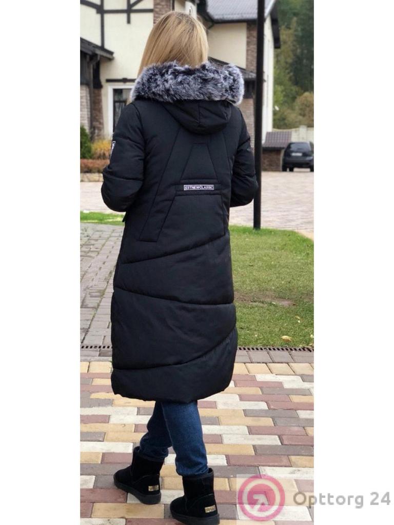 Удлиненный женский пуховик черного цвета оптом