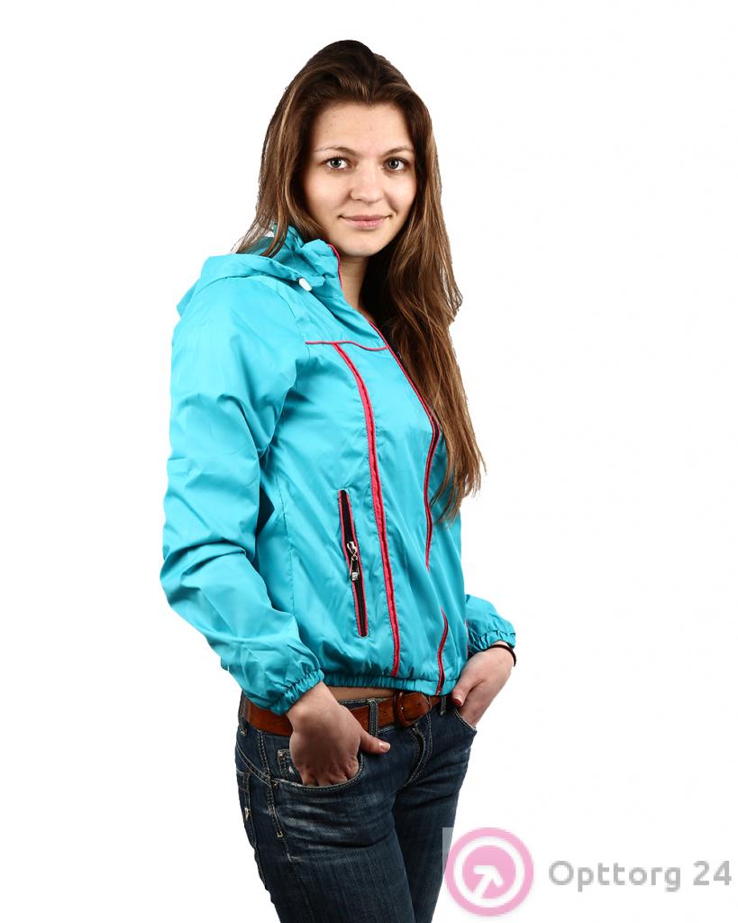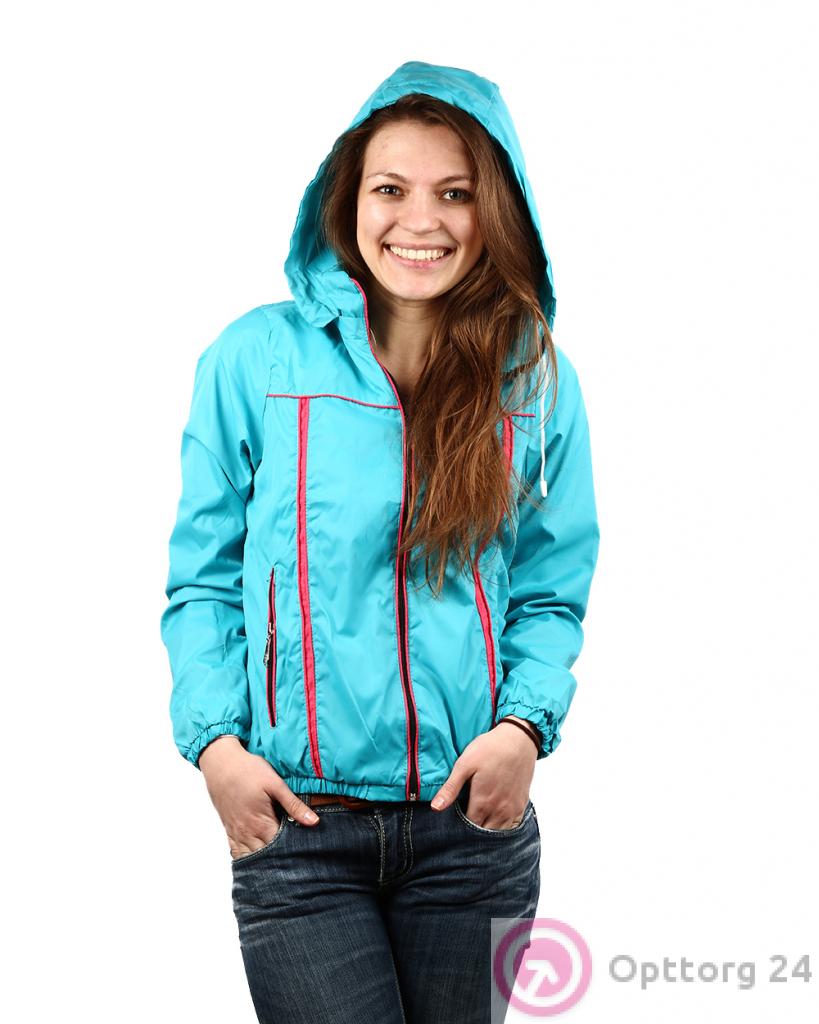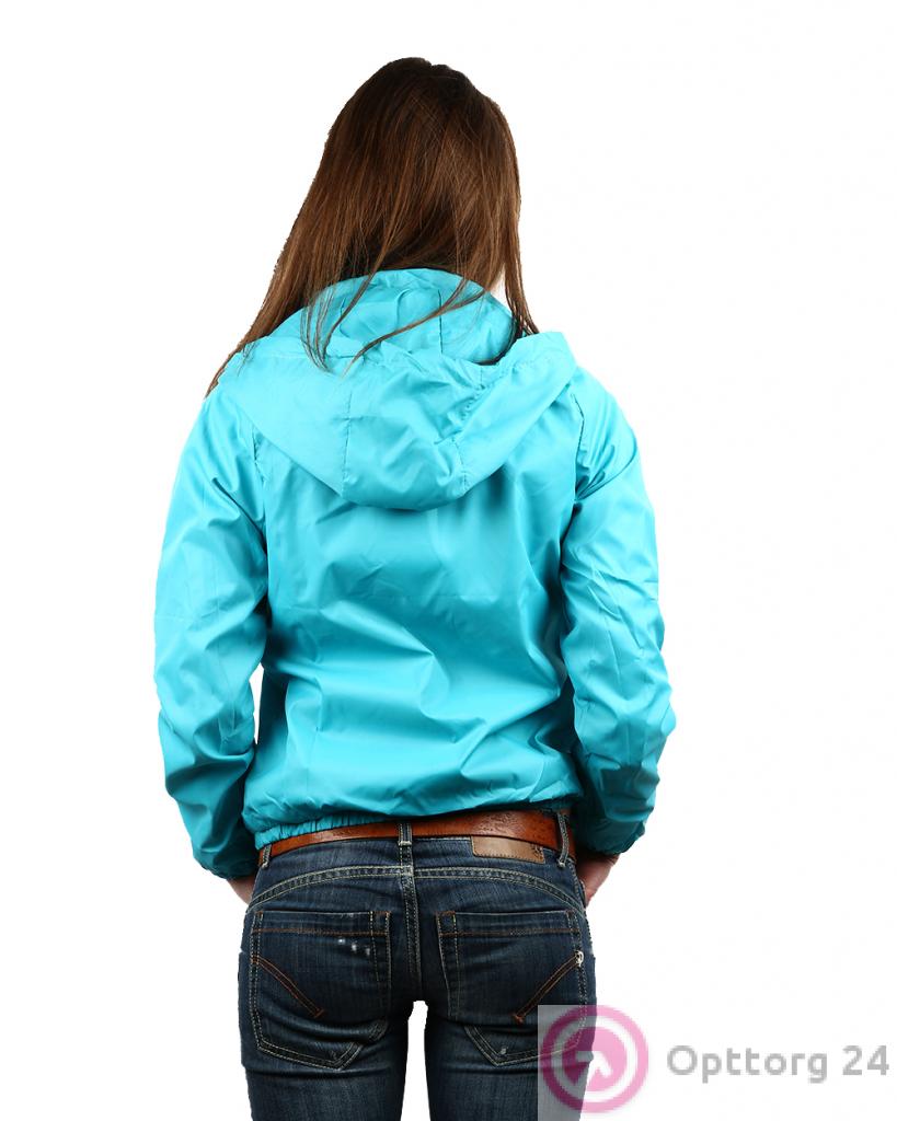 Ветровка женская светло- голубого цвета с капюшоном оптом