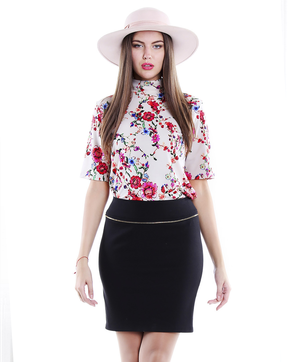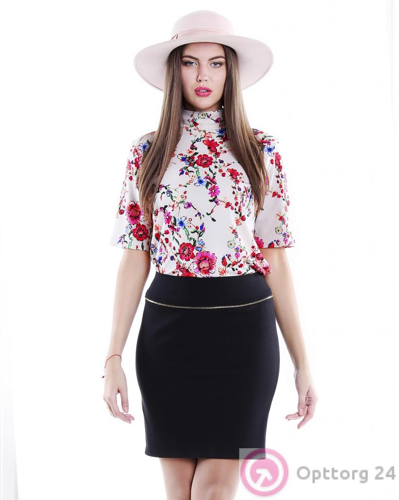 Стильная нежная водолазка кремового цвета с нанесенным на нее рисунком в виде цветов. Метериал приятный к теолу, хорошо сочитаеся с юбками.