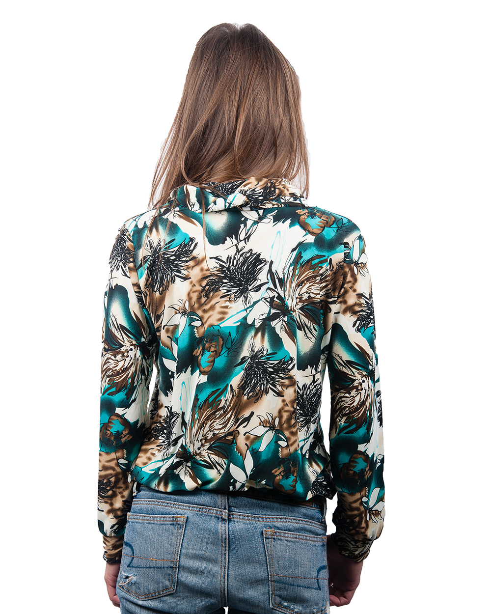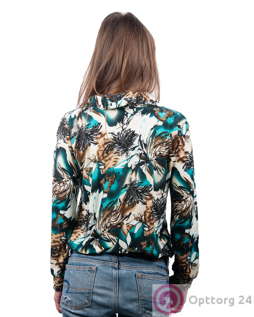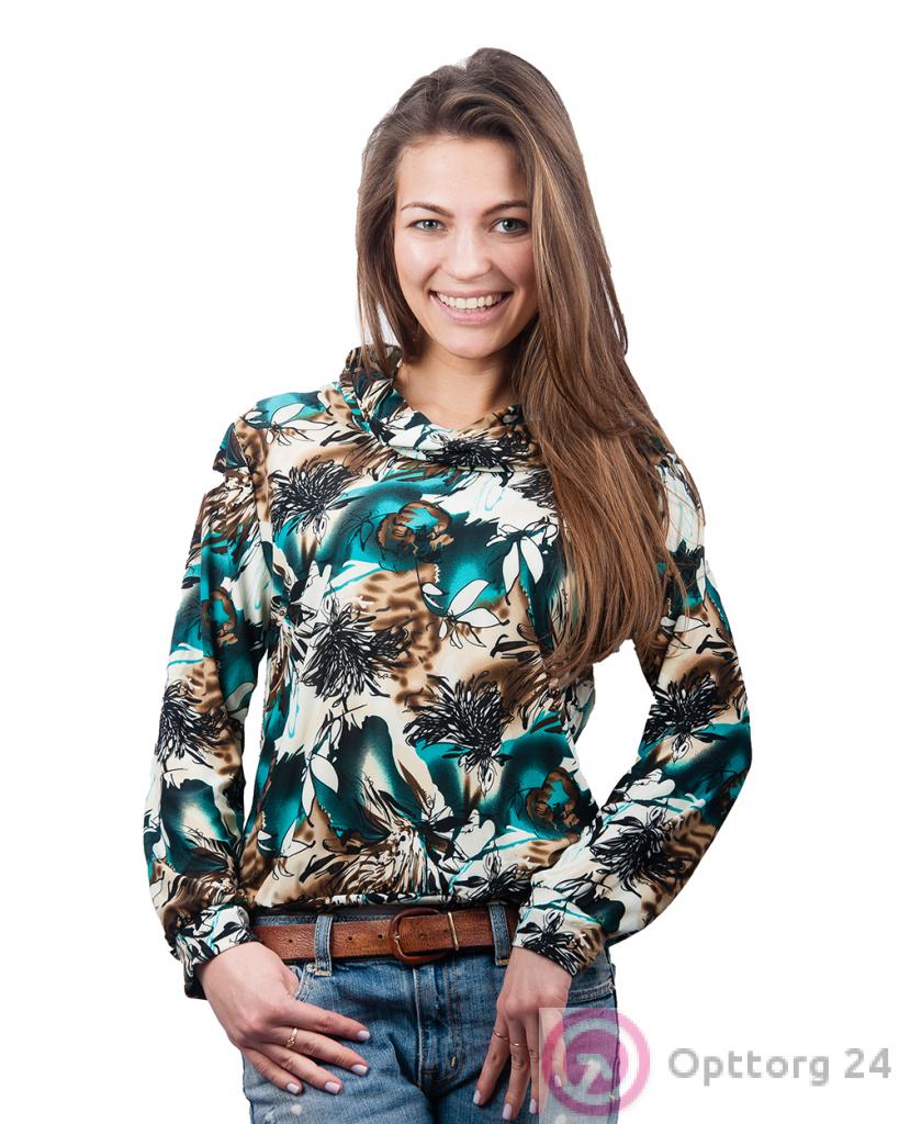 Водолазка женская бело-коричневая с изумрудными разводами оптом