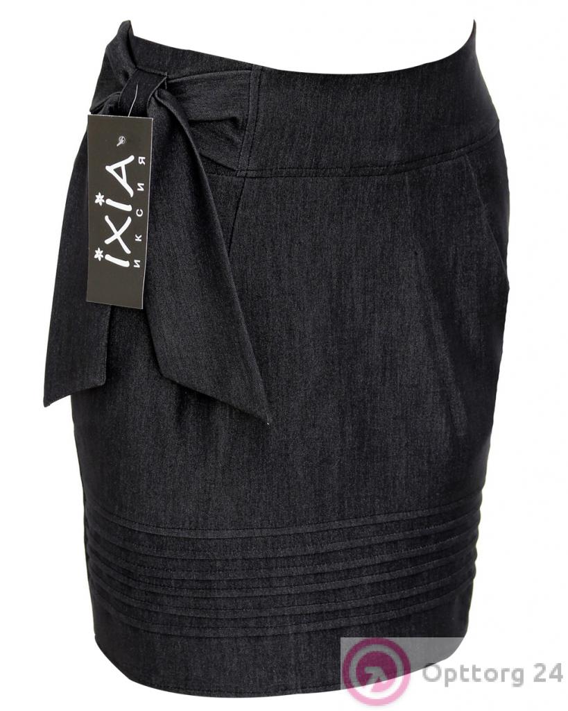 Юбка из джинсы черная с бантом на боку, по низу декоративная строчка оптом