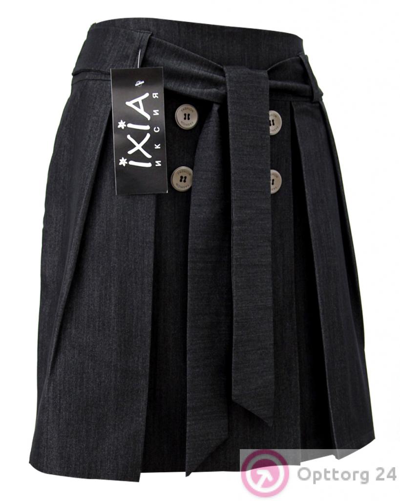 Юбка на поясе со встречными складками, отделка пуговицами оптом
