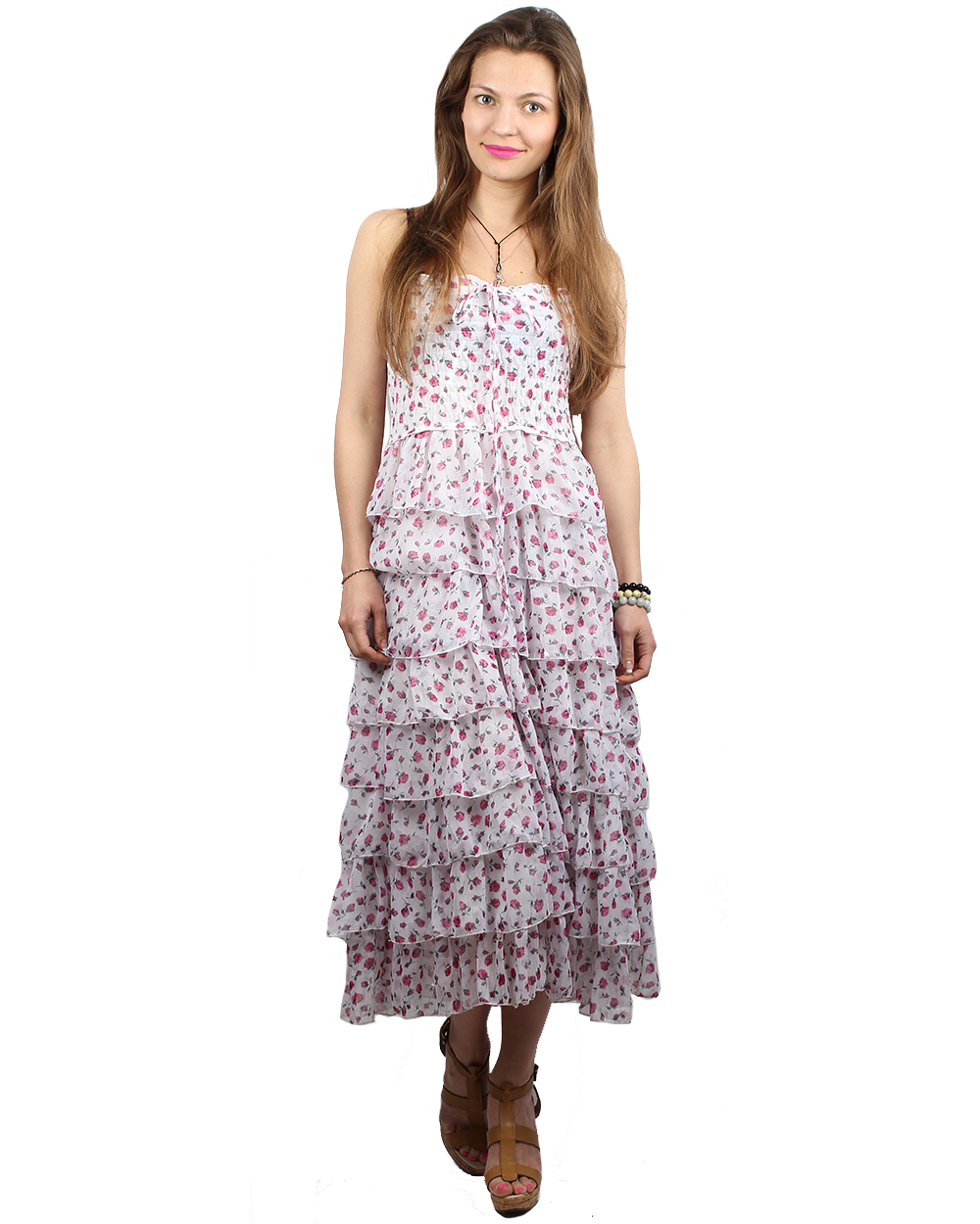 Юбка-сарафан бело-розового цвета "Валан" оптом