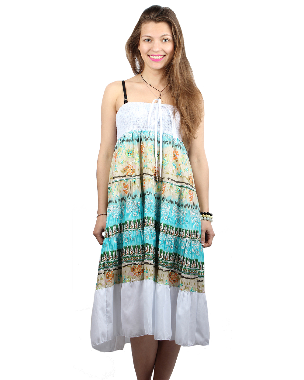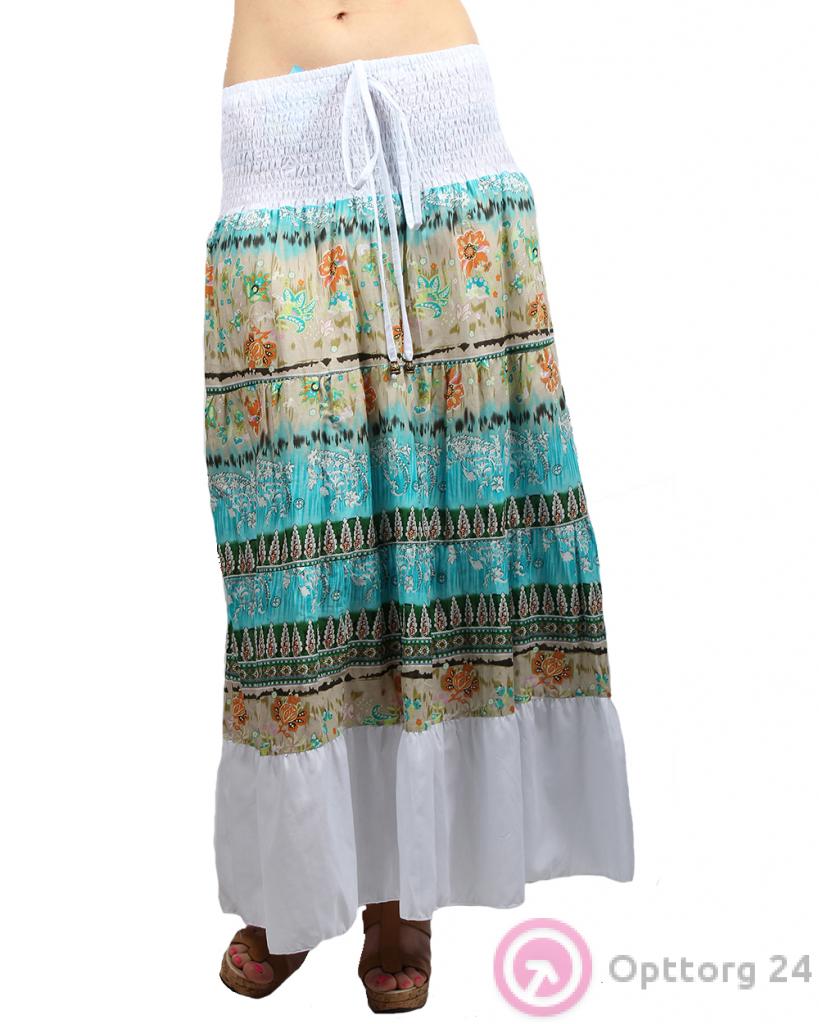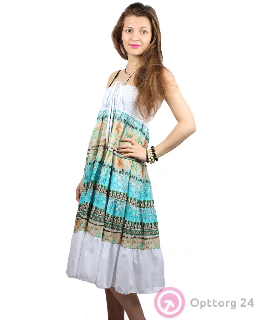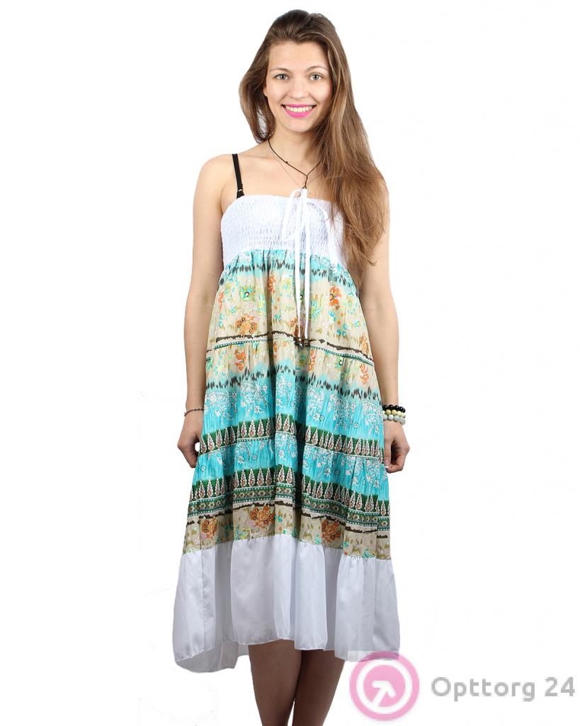 Юбка-сарафан белого цвета с цветным принтом оптом