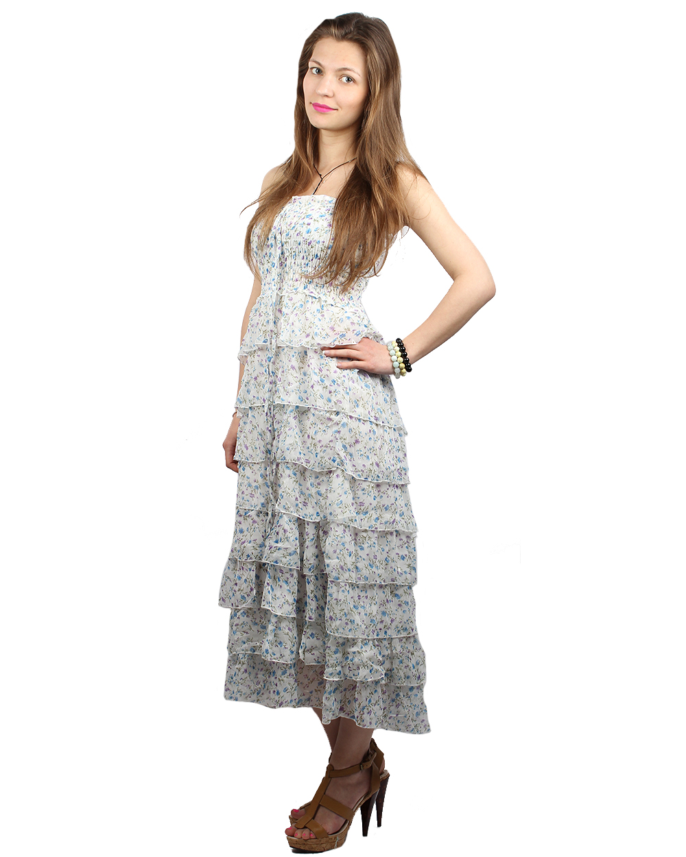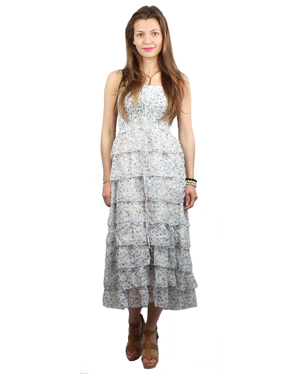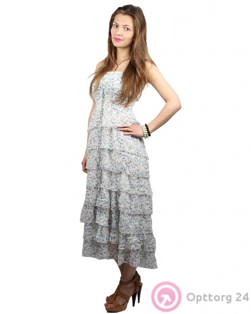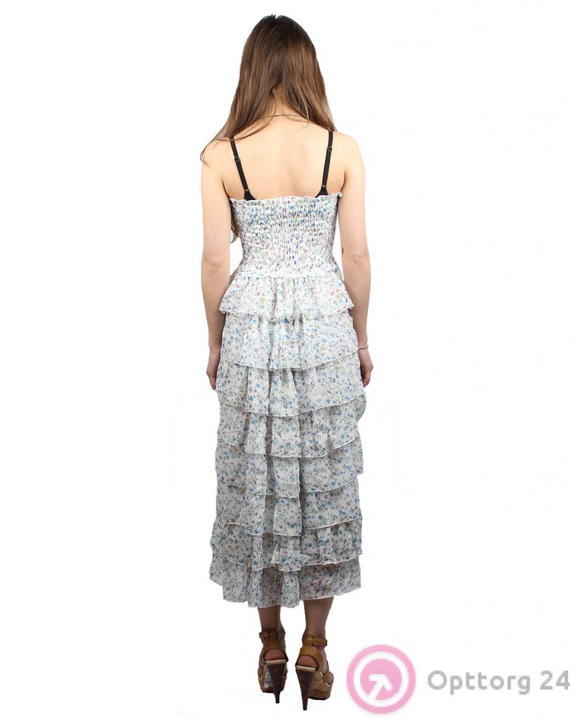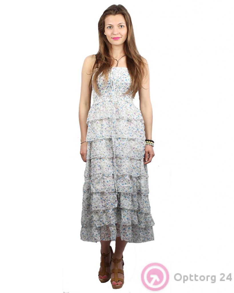 Юбка-сарафан серо-голубого цвета с принтом оптом