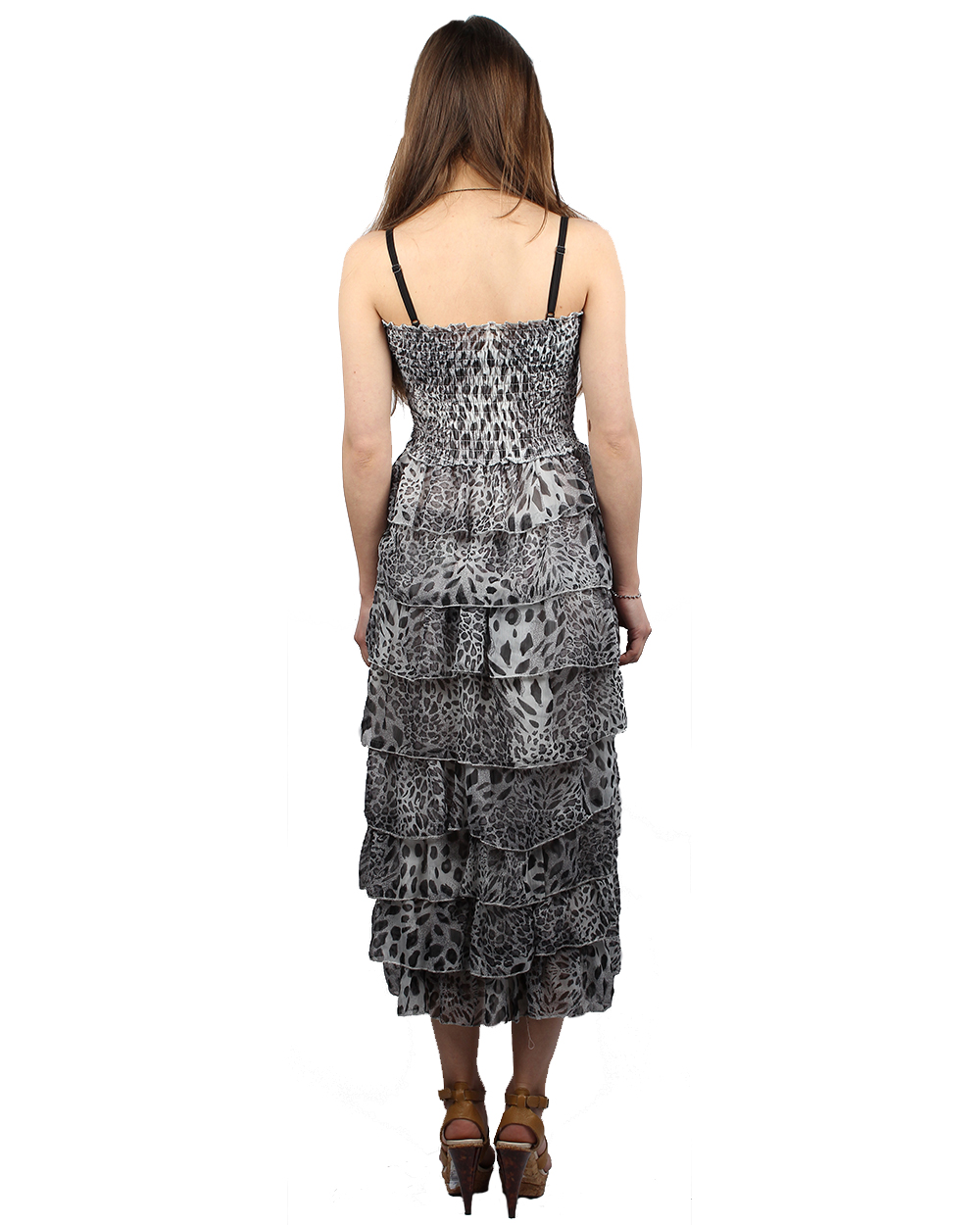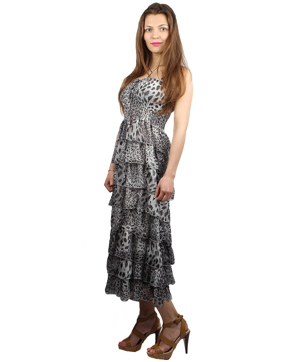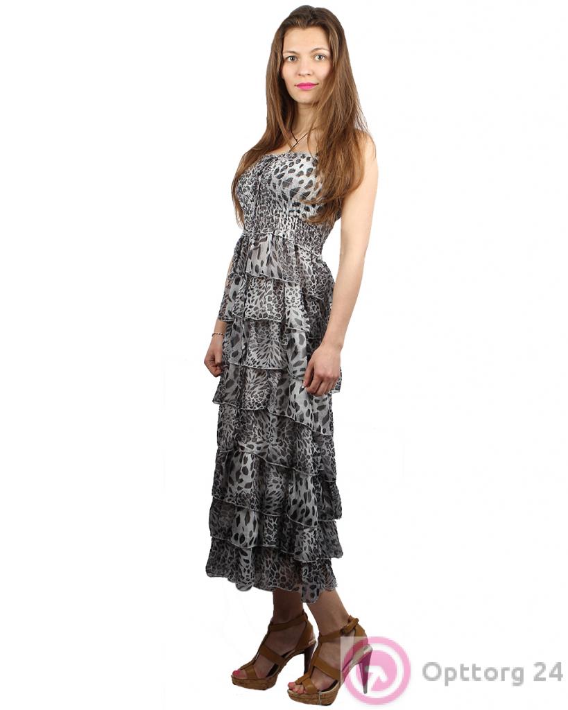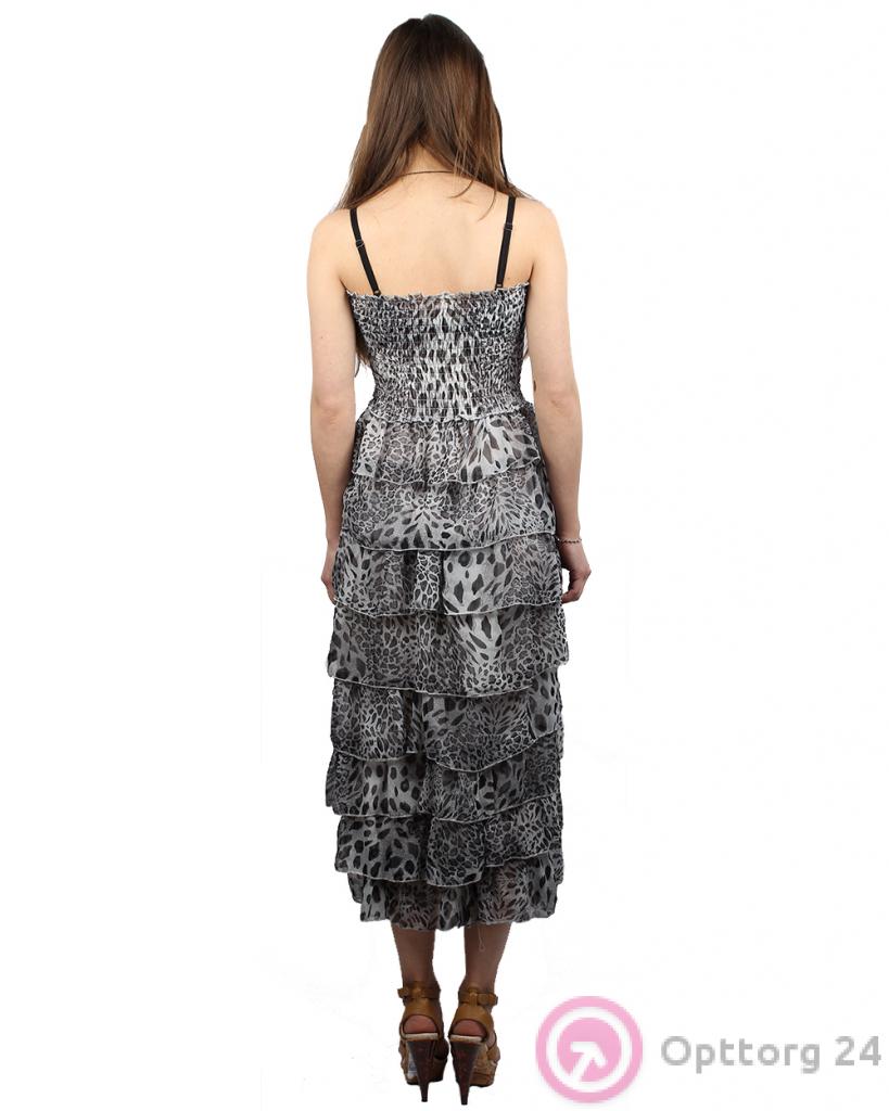 Юбка-сарафан серого цвета с леопардовым принтом оптом