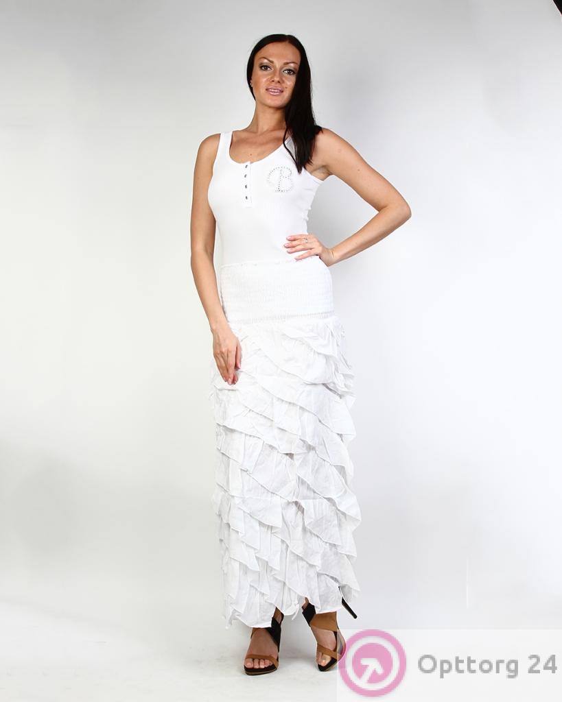 Эта длинная белоснежная юбка создает ощущение игривой загадочности, аккуратно струясь до самых лодыжек. Декоративные воланы добавляют образу воздушности.