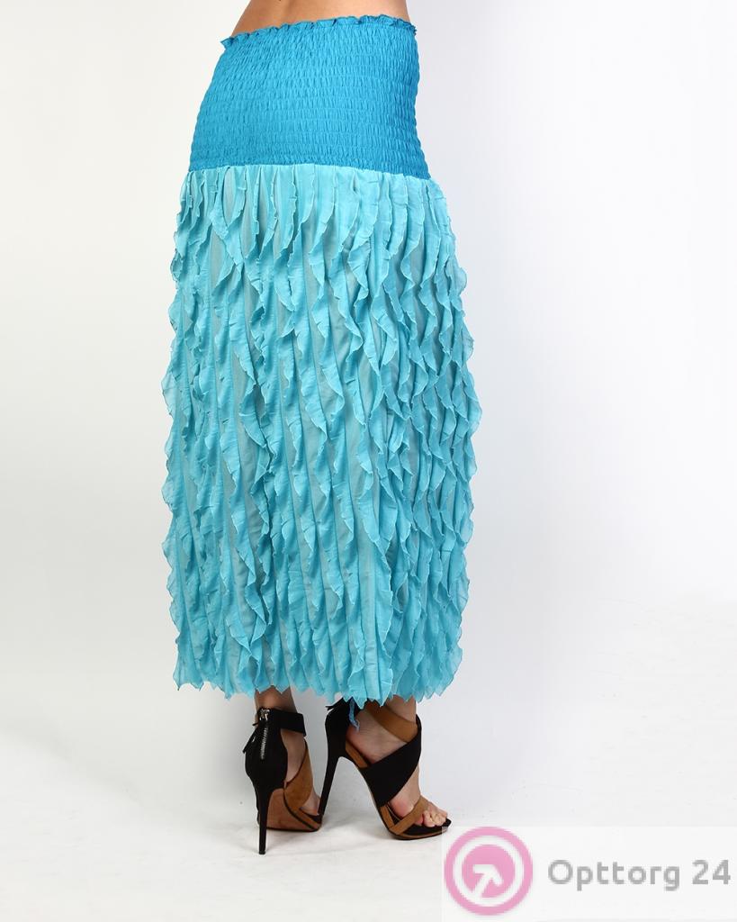 Юбка женская длинная бирюзовая с воланчиками оптом