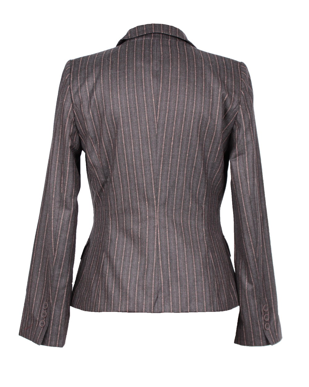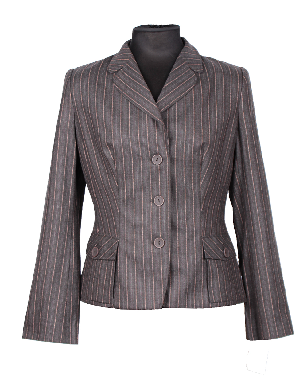 Жакет женский на трёх пуговицах с накладными карманами тёмно-коричневый в коричневую полоску