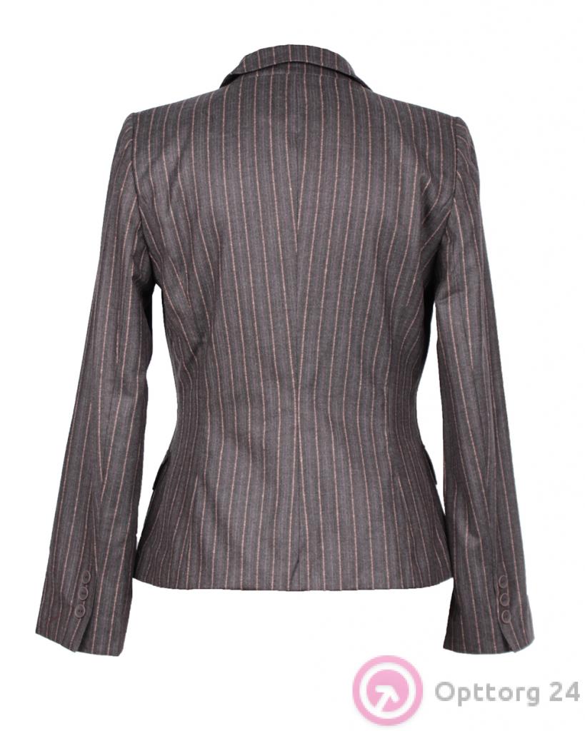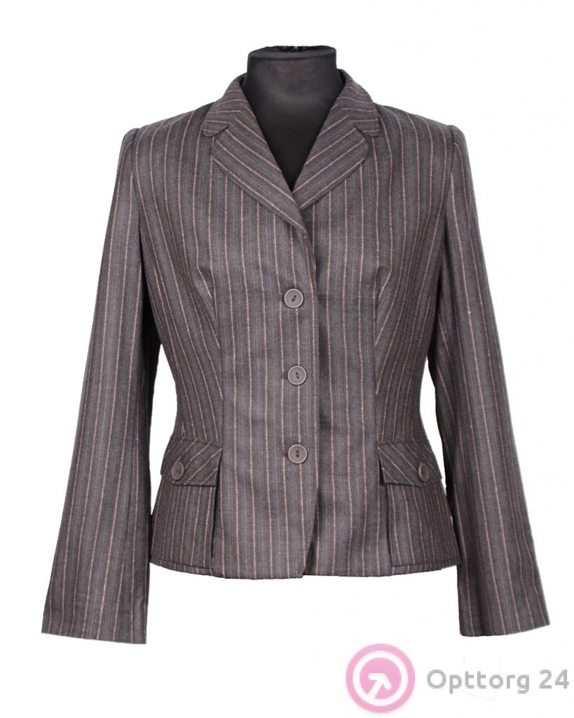 Жакет женский на трёх пуговицах с накладными карманами тёмно-коричневый в коричневую полоску оптом