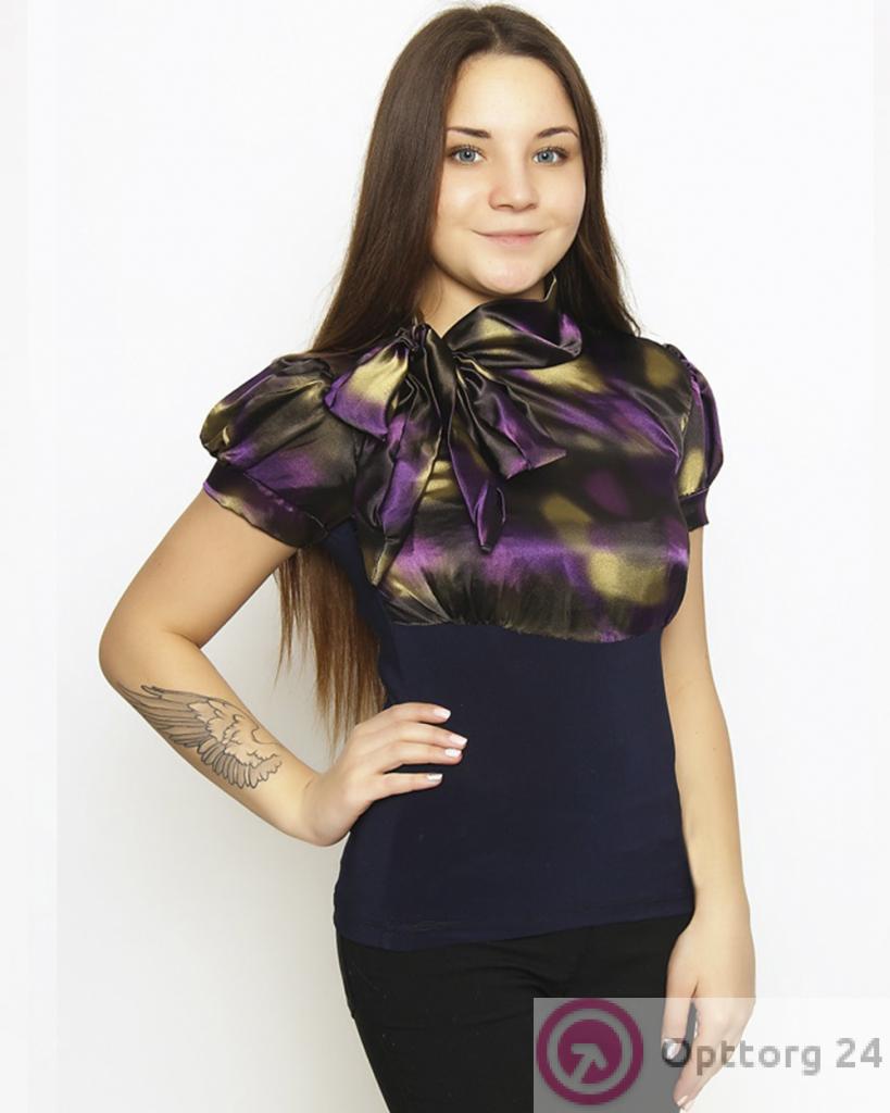 Женская блузка тёмно-синего цвета с атласной вставкой. оптом