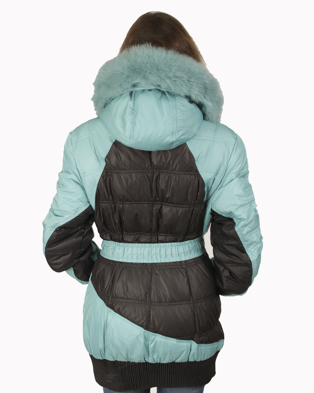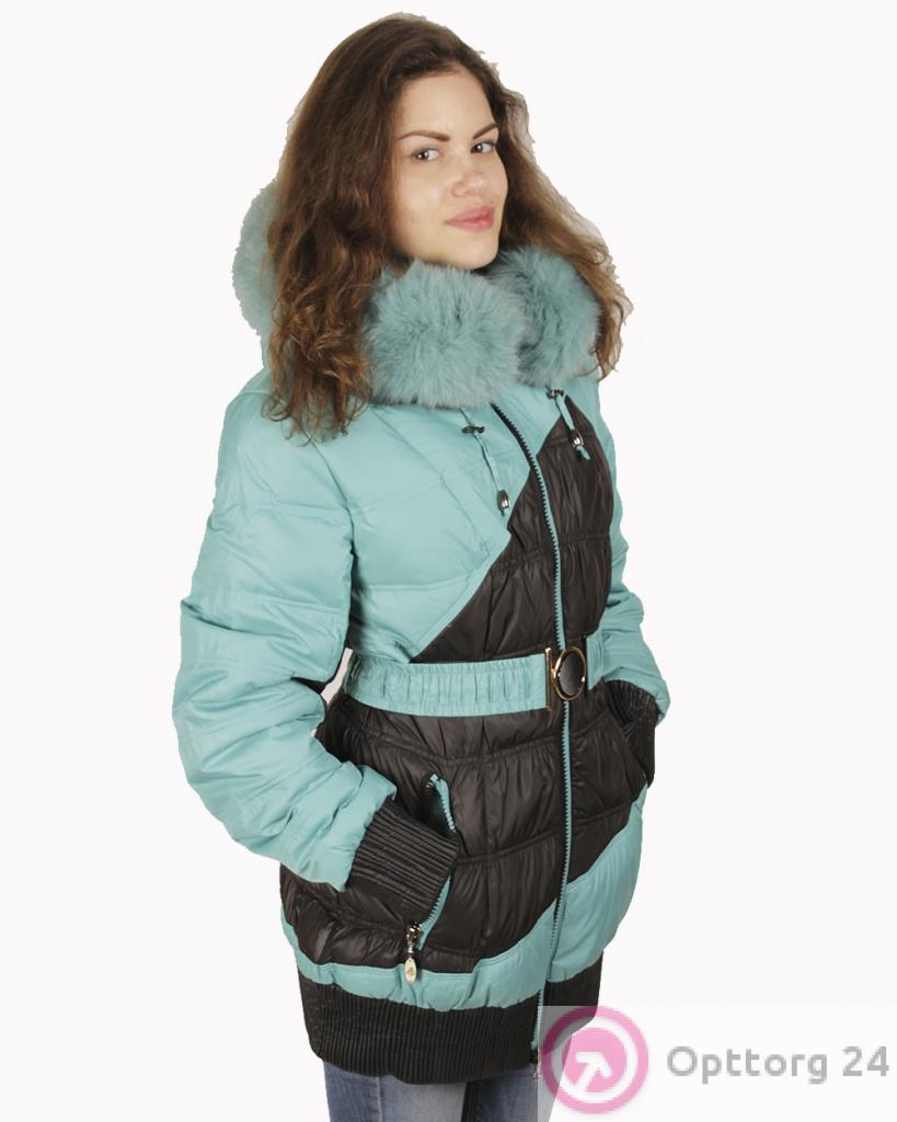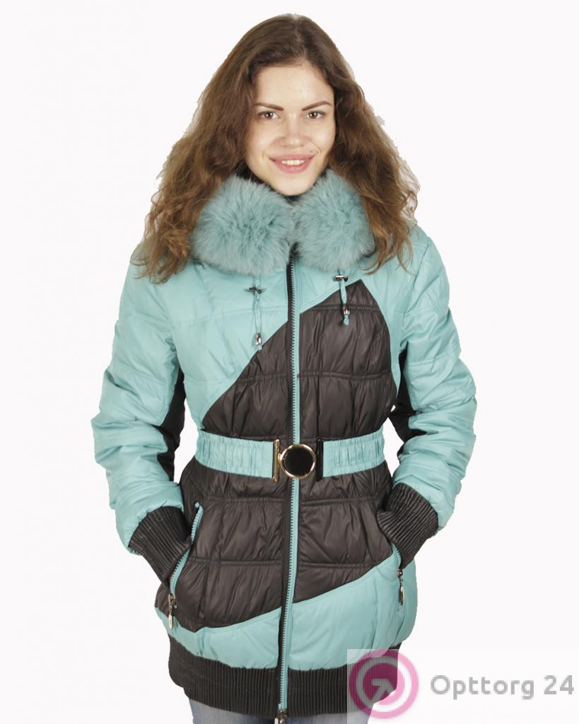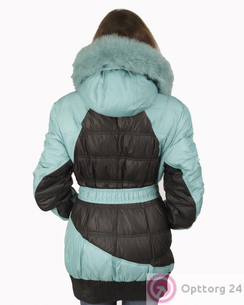 Женский двухцветнный пуховик с мехом на воротнике оптом