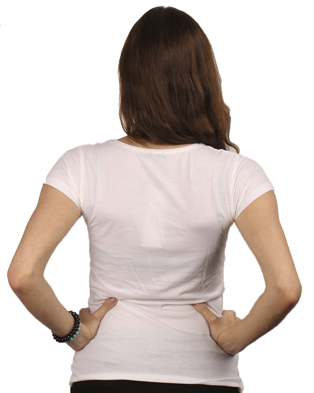 Женская футболка приталенного кроя, с блестящим рисунком на передней части модели.