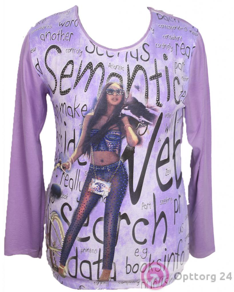 Женская футболка фиолетового цвета с принтом. оптом