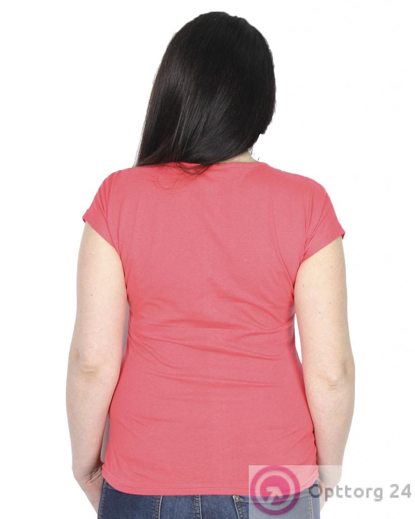 Футболка женская красного цвета с принтом в виде женщины в шляпе.
