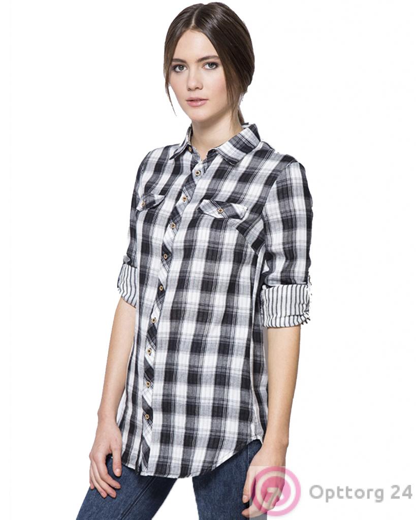 Женская клетчатая рубашка черно-белого цвета оптом