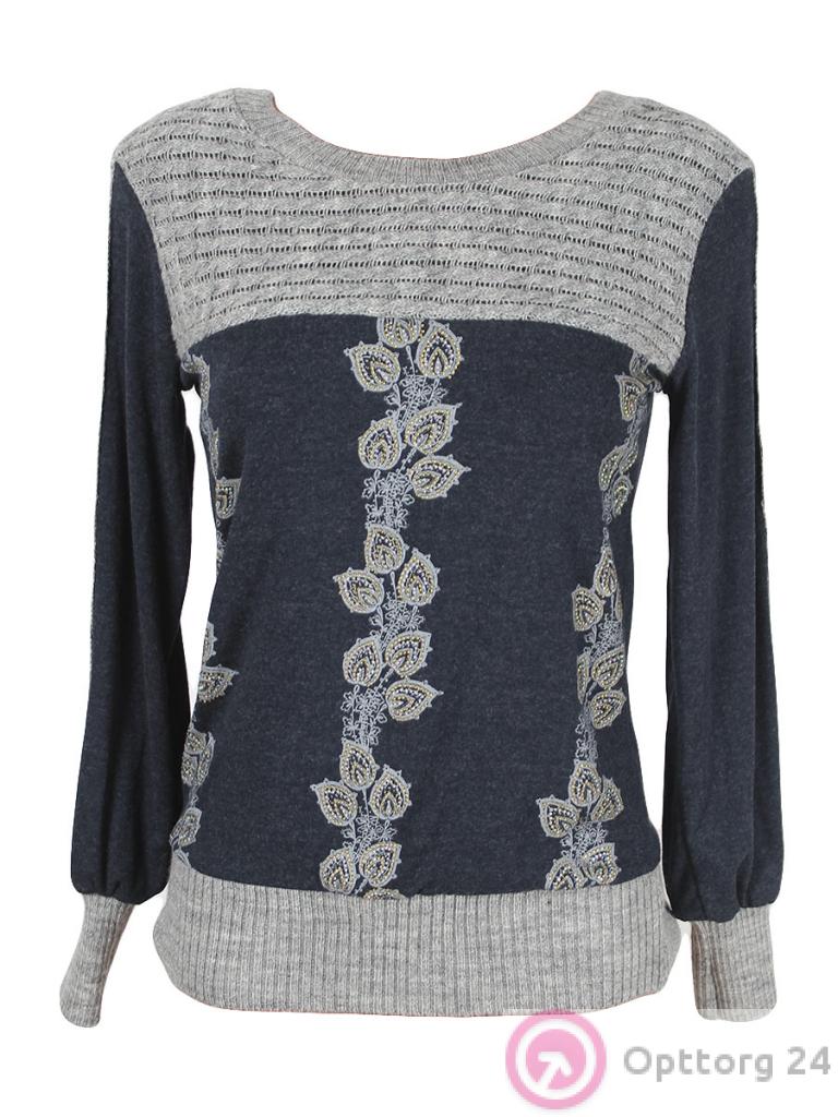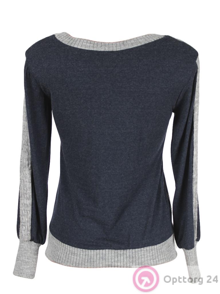Женская кофта синего цвета с серой вязкой и стразами. оптом