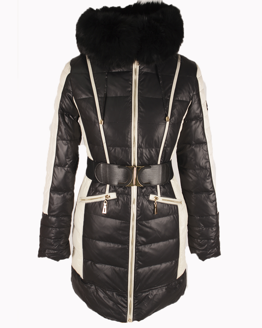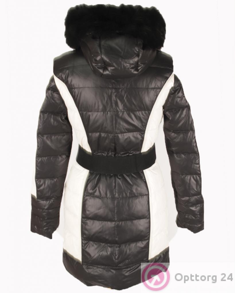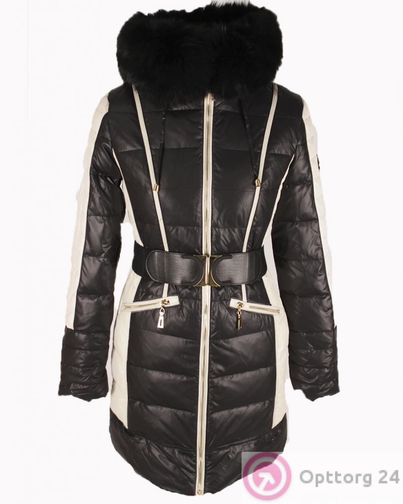 Женский пуховик черно-белого цвета с меховым воротником оптом