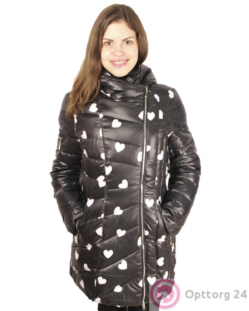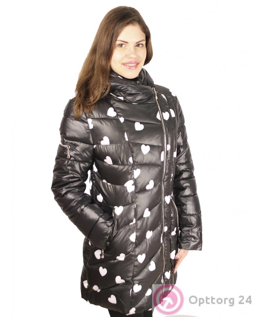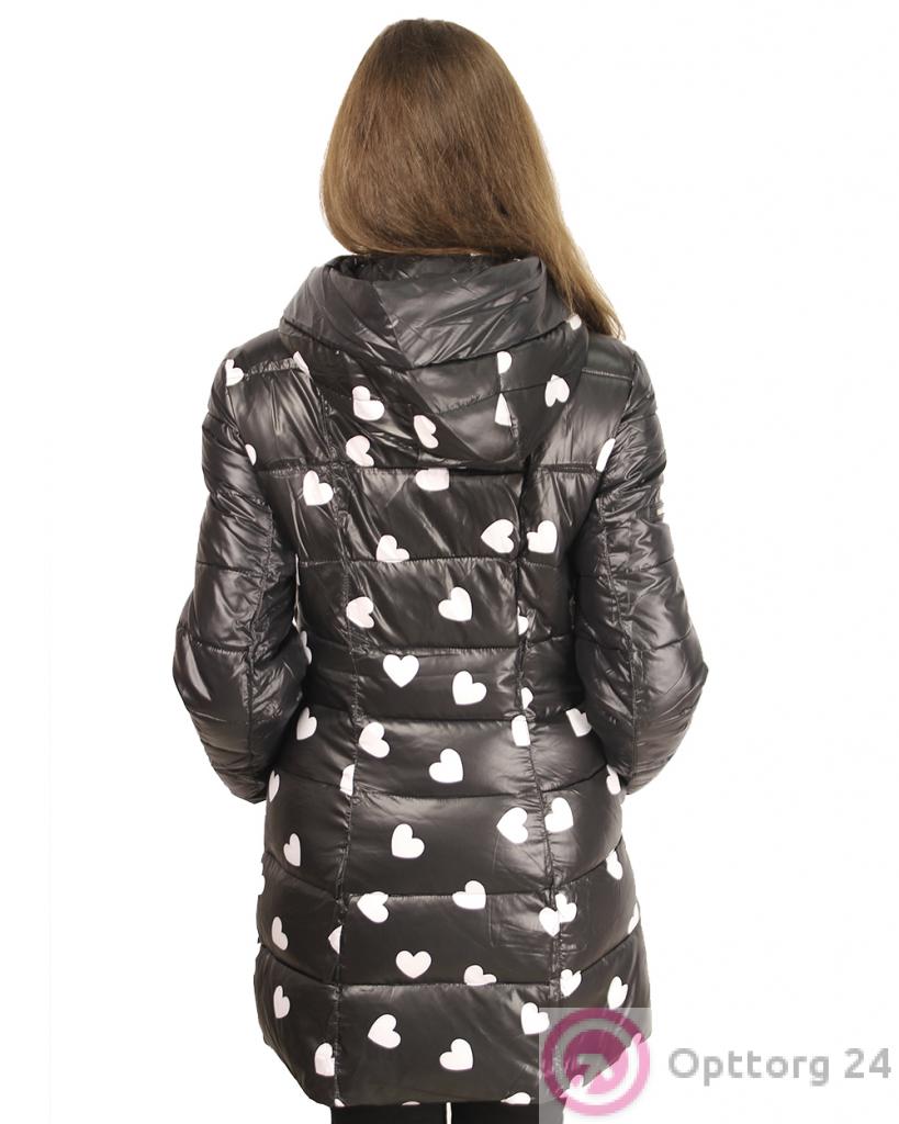 Женская куртка на синтепоне черного цвета с белым горошком. оптом