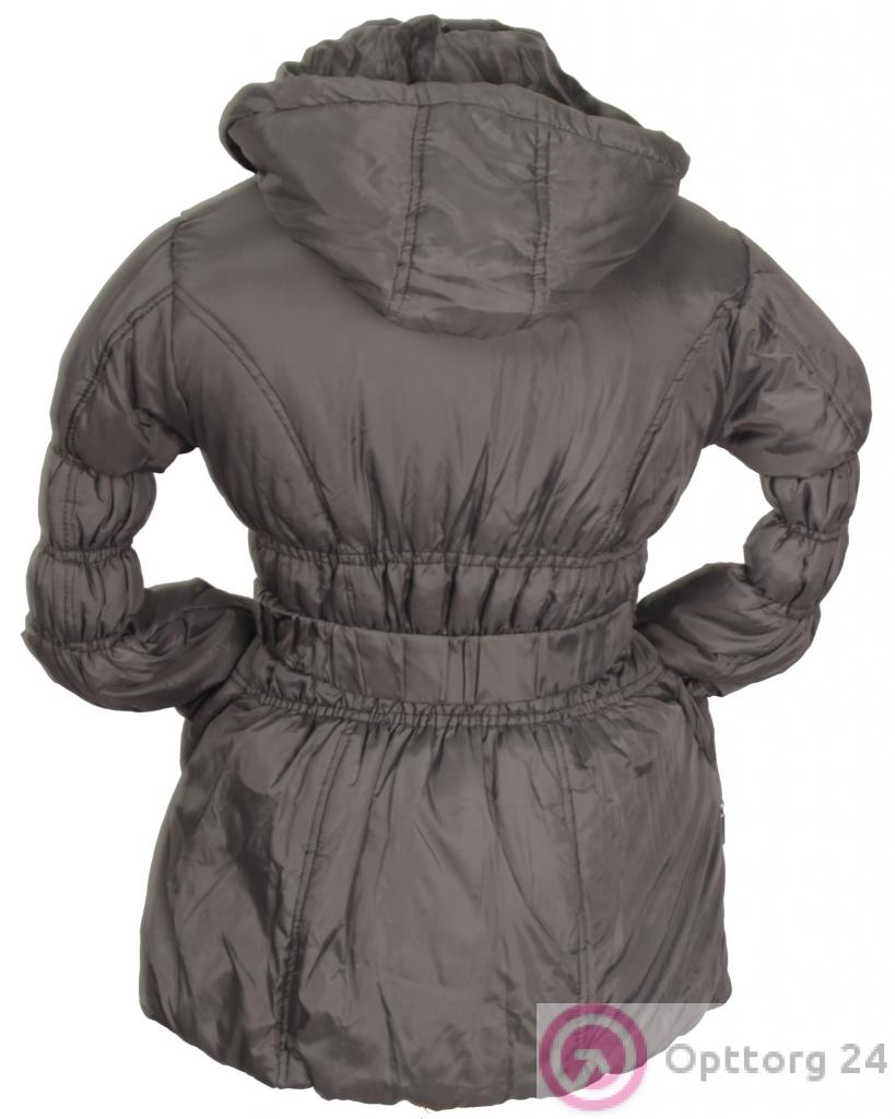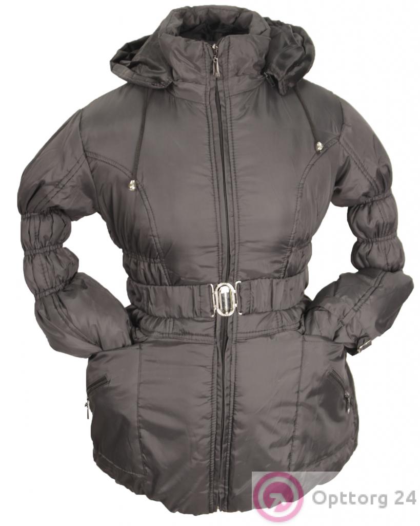 Женская куртка на синтепоне черного цвета с поясом оптом