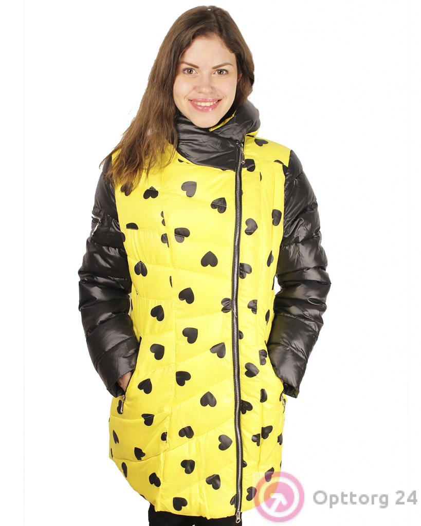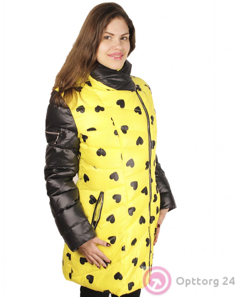Женская куртка на синтепоне чёрно-желтого цвета в крупный горох. оптом