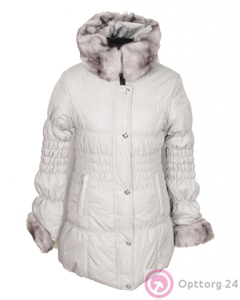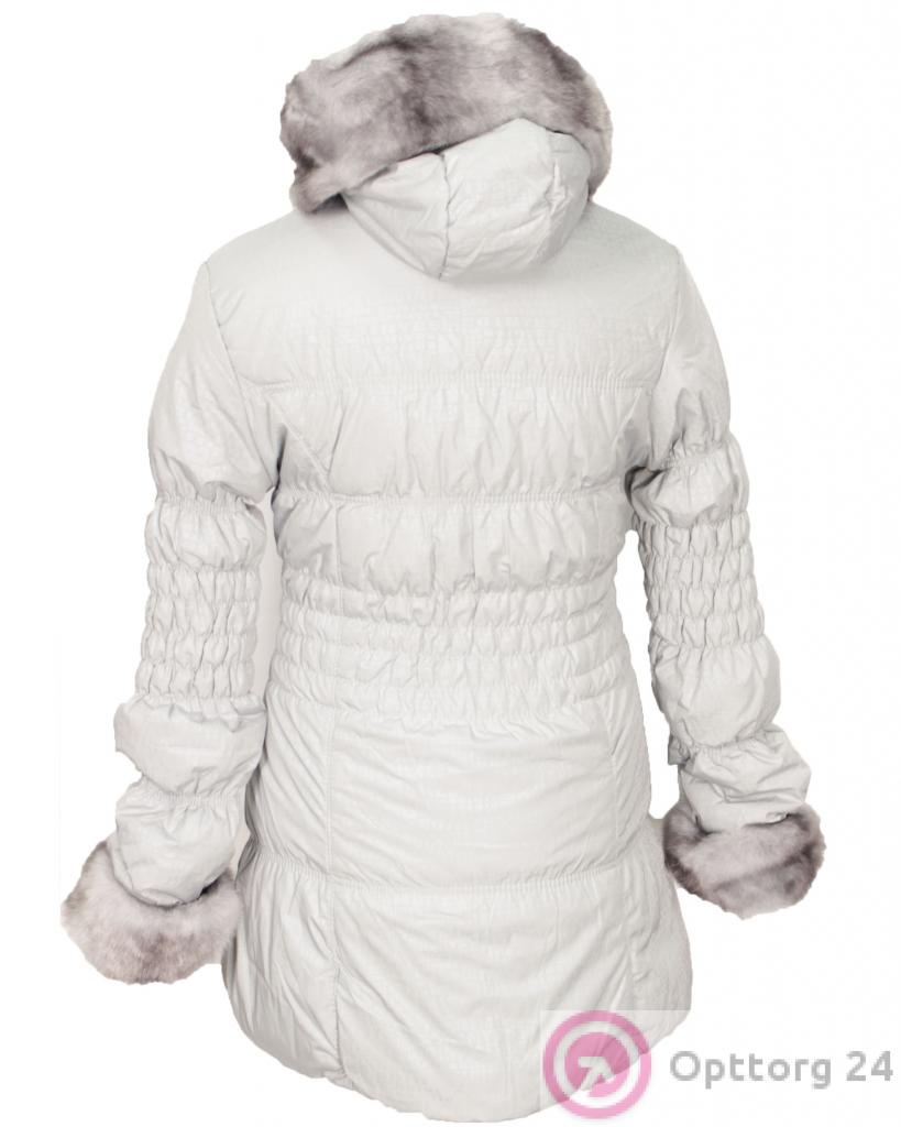 Женская куртка на синтепоне с мехом на капюшоне белого цвета оптом