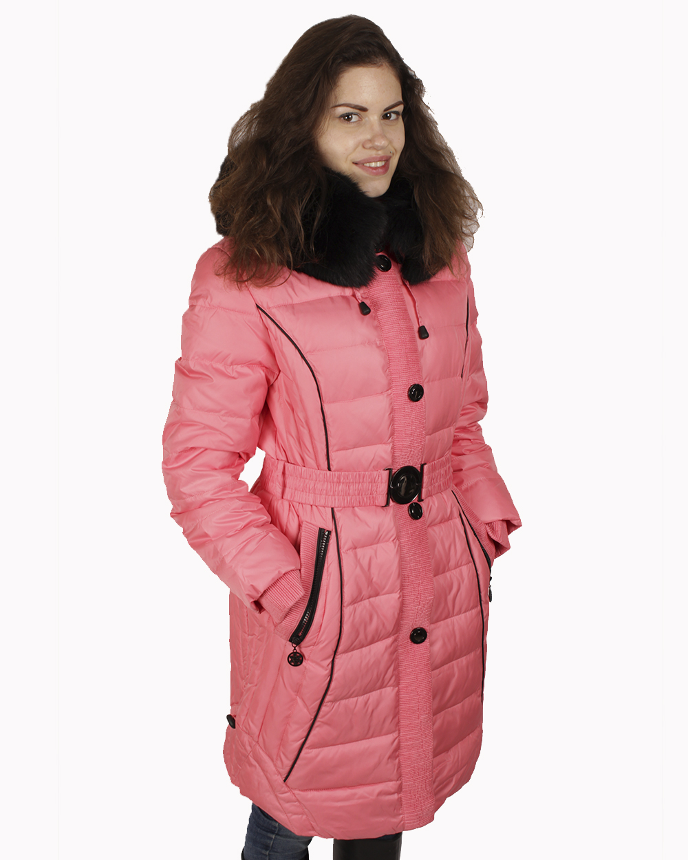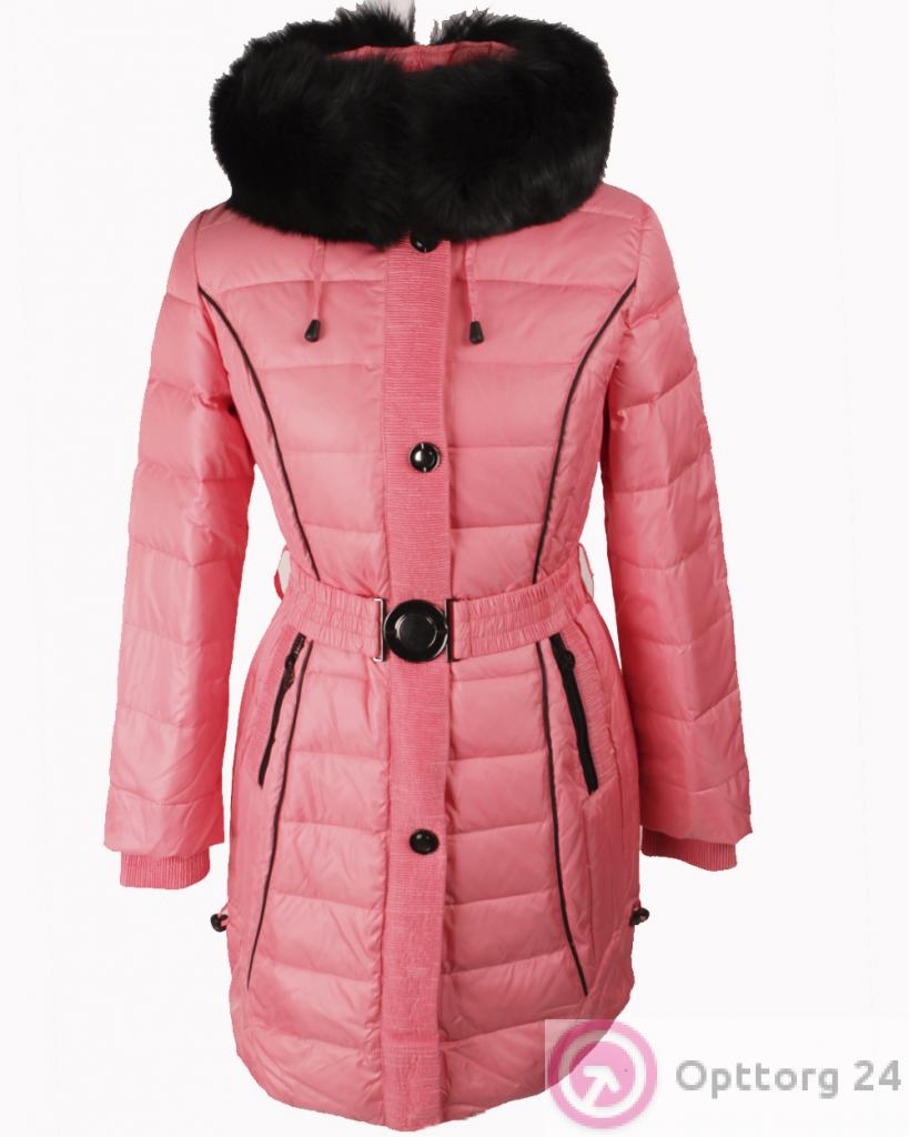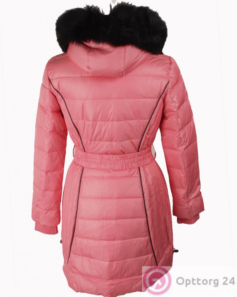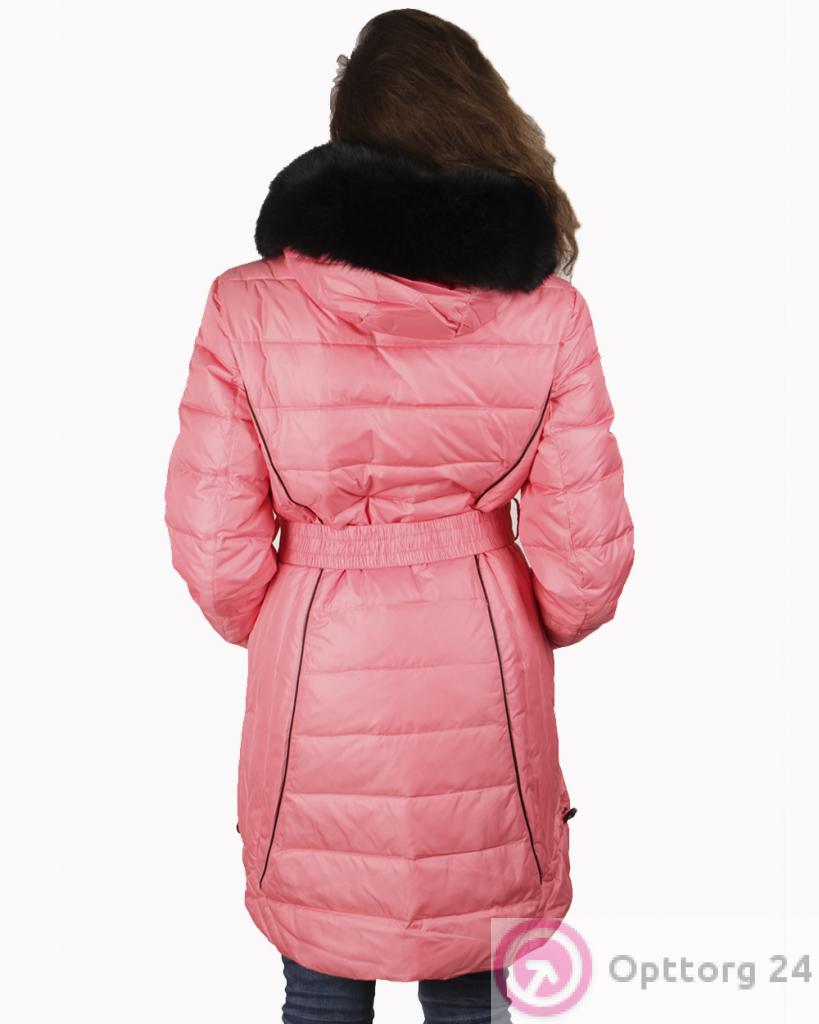 Женский пуховик нежно розового цвета с меховым воротником оптом