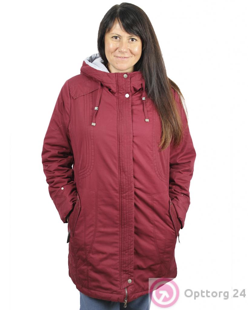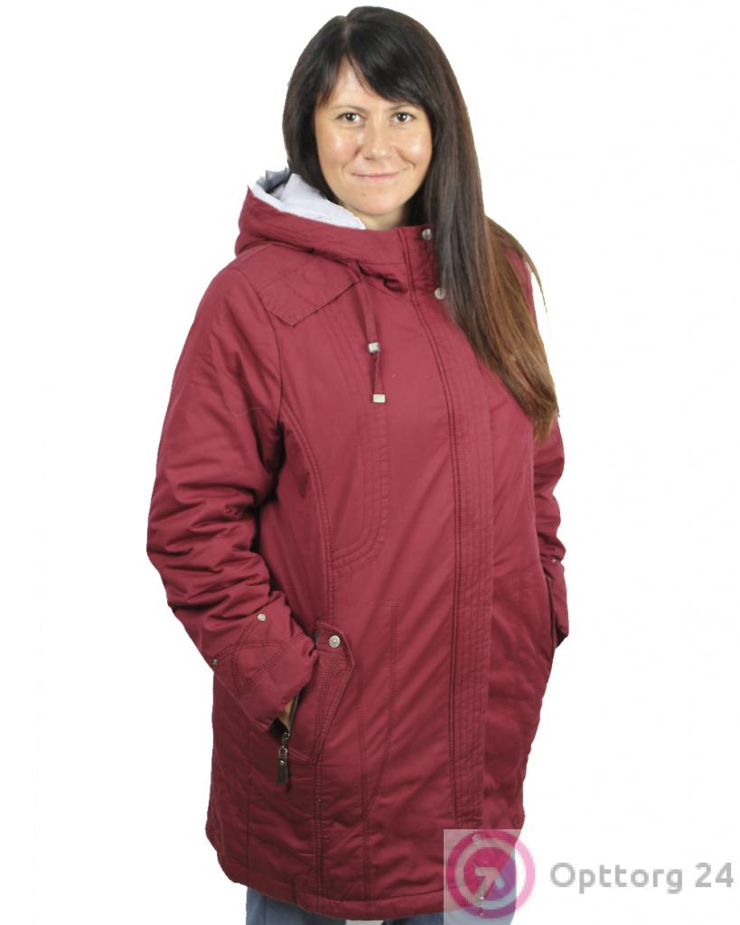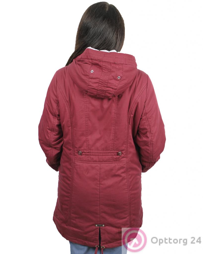 Женская куртка Парка вишневого цвета с капюшоном. оптом