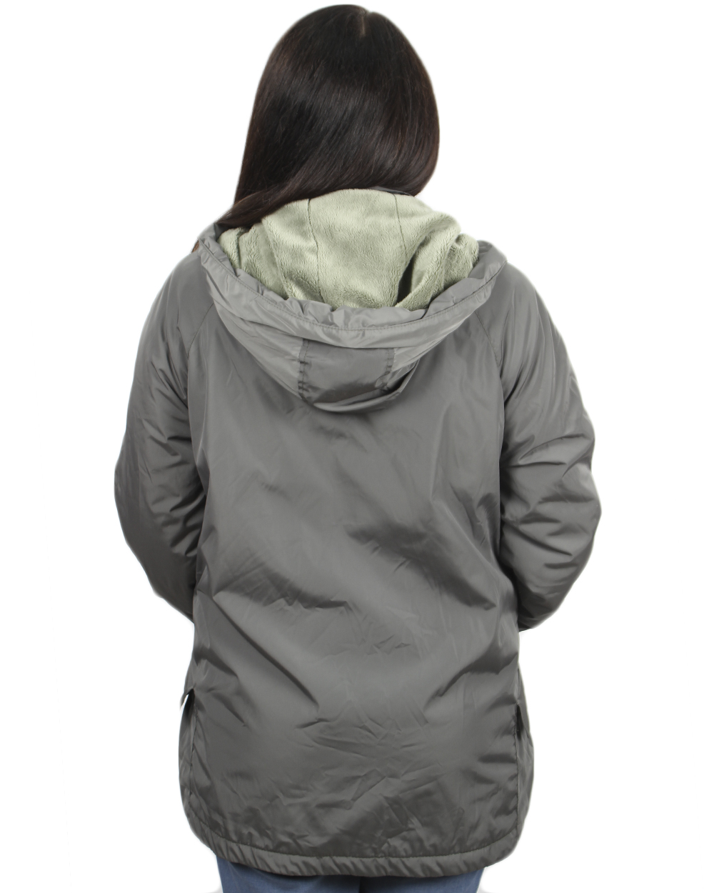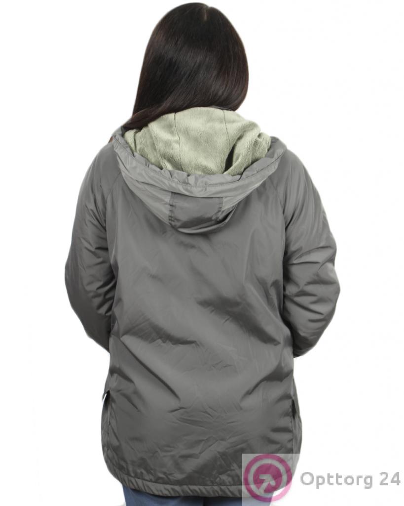 Женская куртка зеленого цвета скапюшоном. Подкладка внутренней стороны выполнена из мягкого плюша.