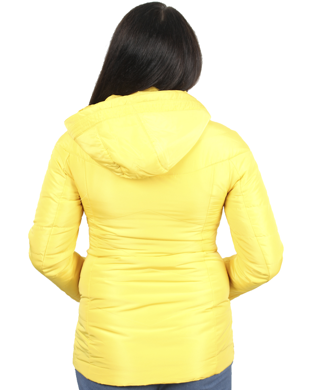 Куртка женская с блестящей застежкой карманами и капюшоном.