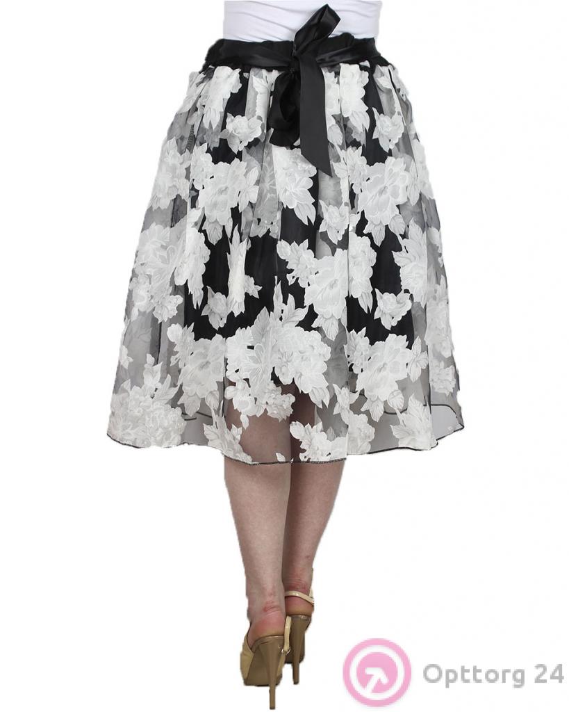 Женская летняя юбка с гипюром и с цветочным принтом. оптом