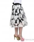 Юбка женская черного цвета с гипюром, Модель украшенна белым цветочным принтом.