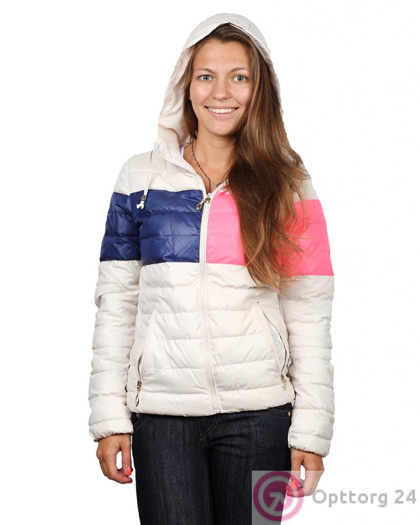 Женская молодежная куртка на синтепоне молочного цвета оптом