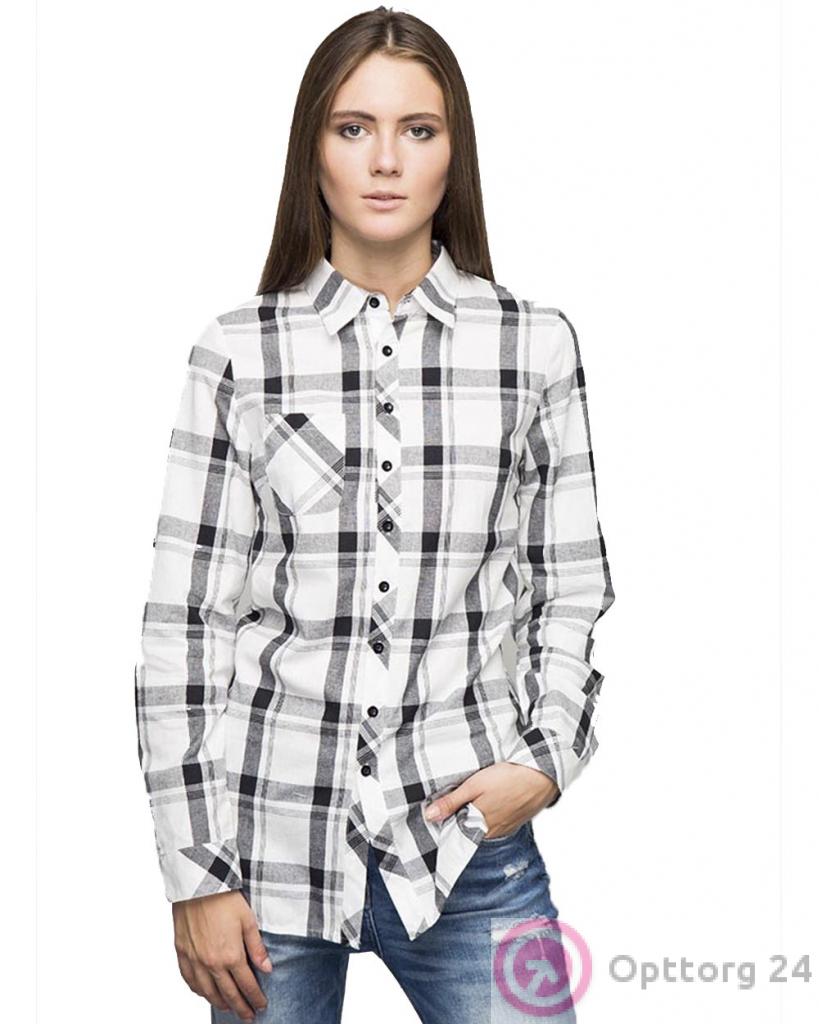 Женская стильная рубашка черно- белого цвета в крупнуюю клетку. Модель имеет нагрудный карман.