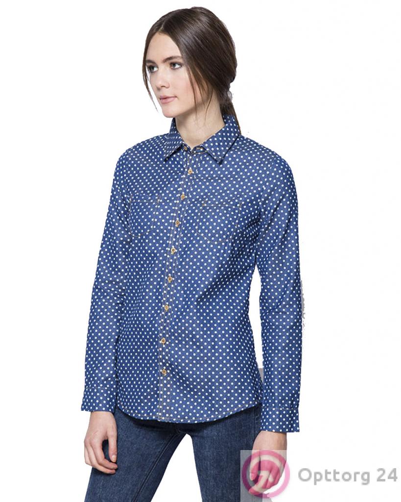 Женская рубашка синего цвета в мелкий белый горох. оптом