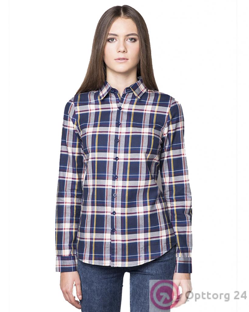Женская рубашка в клетку тёмно-синего цвета с серыми полосками оптом