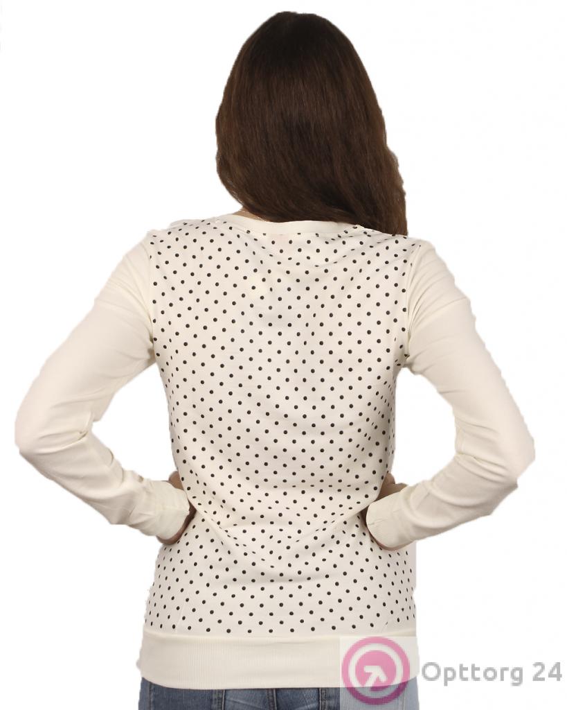 Женская толстовка "Кенгуру" молочного цвета в мелкий черный горох. оптом