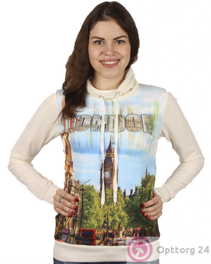 Женская толстовка типа "Худди" с длинным воротом белого цвета. оптом