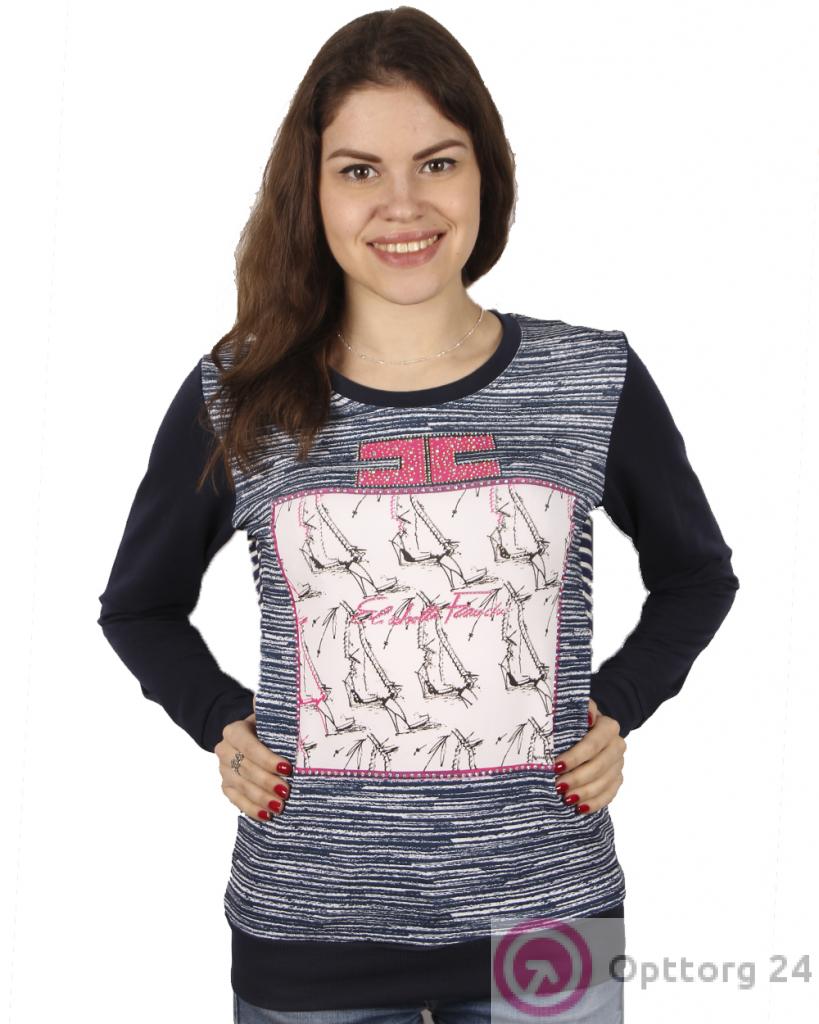 Женская толстовка тёмно-синего цвета с ярким цветным принтом оптом
