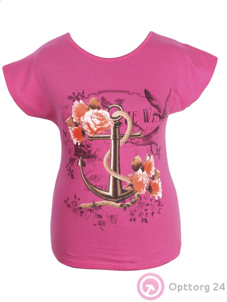 Женская турецкая футболка с укороченным рукавом и принтом. оптом