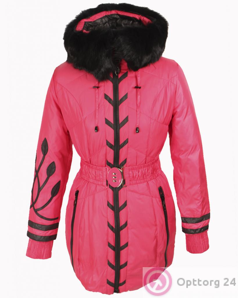 Женская розовая куртка утеплённая двойным синтепоном с нашивками в виде лазы