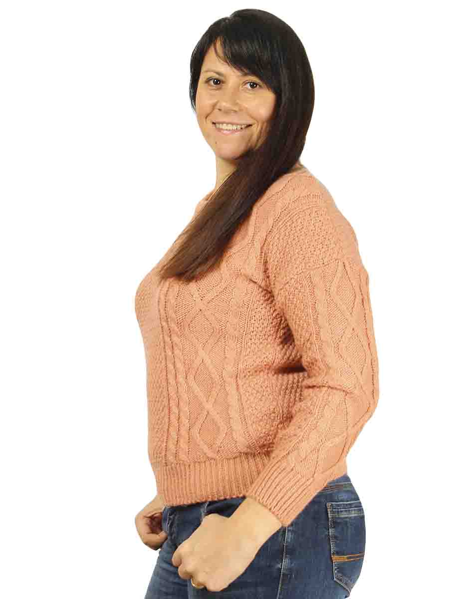 Кофта вязанная коричневого цвета крупной вязки с косами.