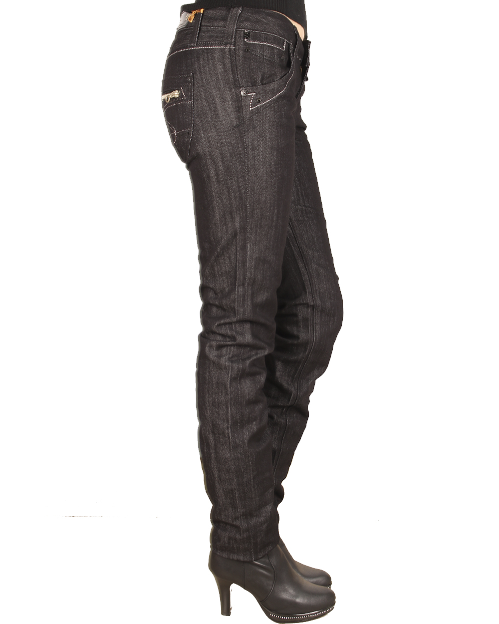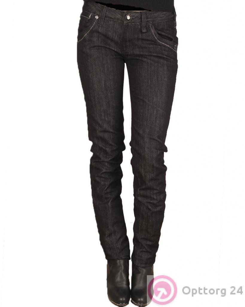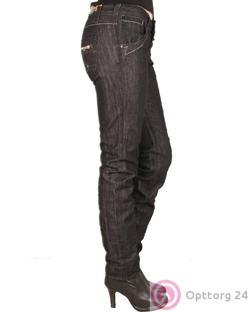 Женские зауженные джинсы с серебристой молнией на заднем кармане оптом