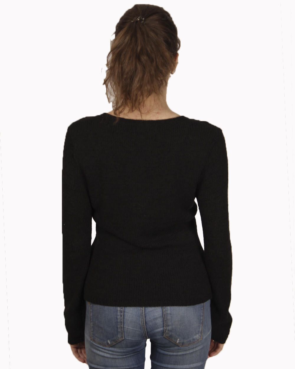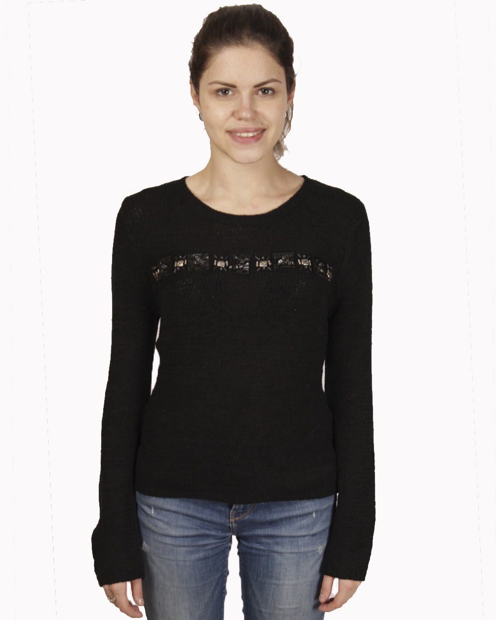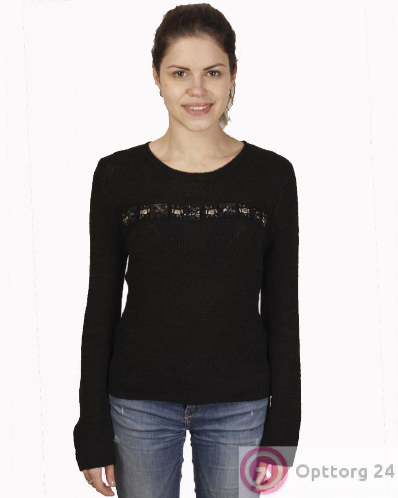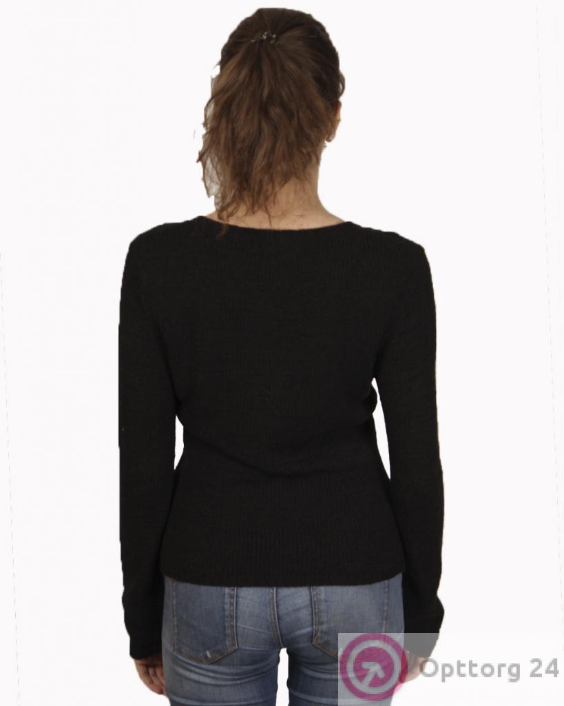 Женский джемпер черного цвета с бусами в области груди. оптом