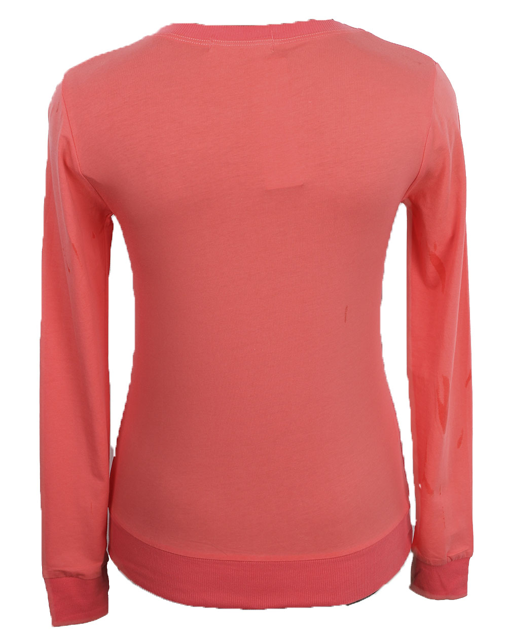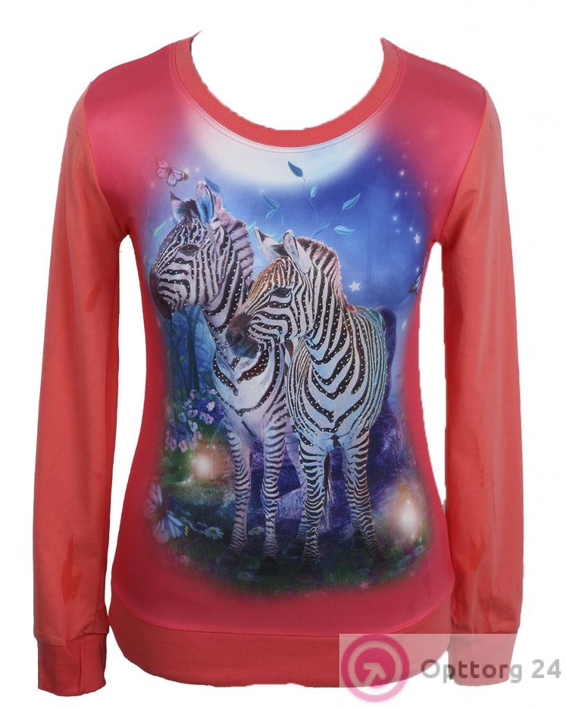 Женский джемпер красного цвета с фотопринтом зебры, украшенным мелкими стразами.