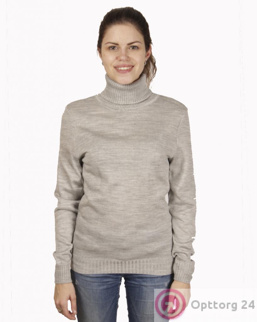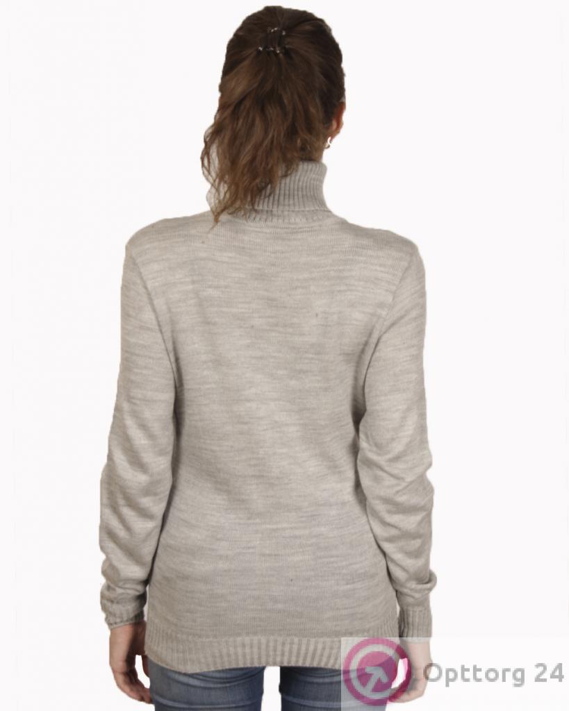 Женский тёплый джемпер однотонного серого цвета. На 30% состоит из шерсти .