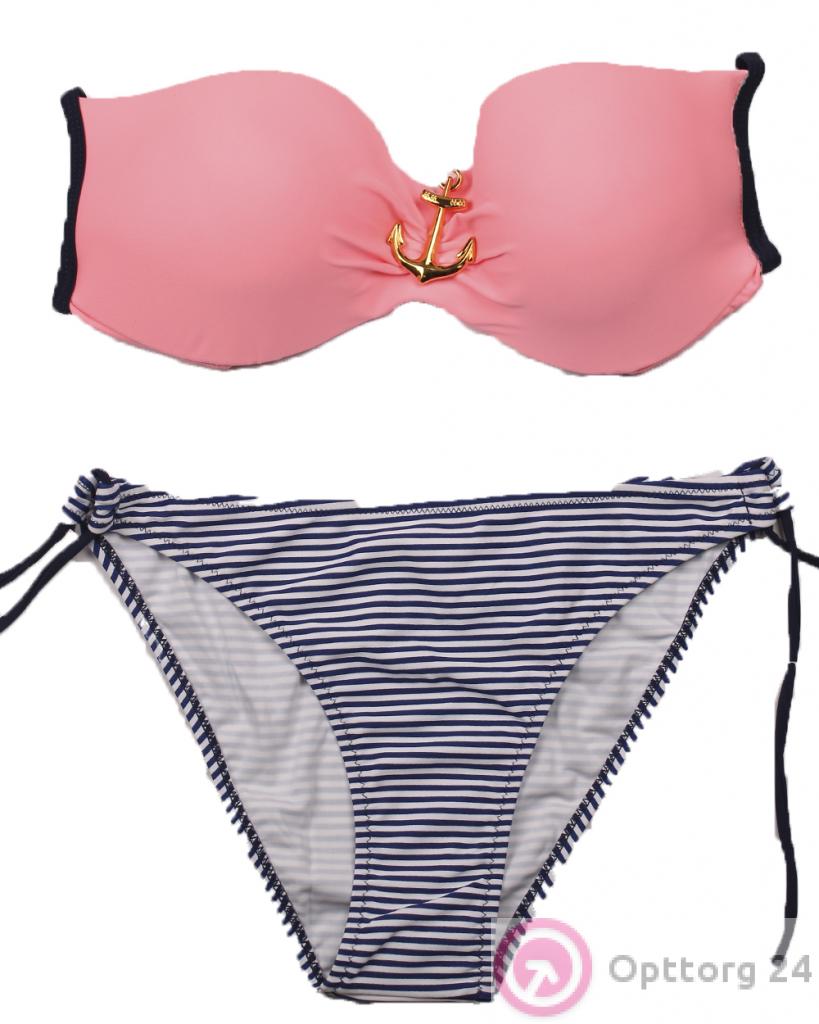 Женский купальник нежно-розового цвета с якорем. оптом