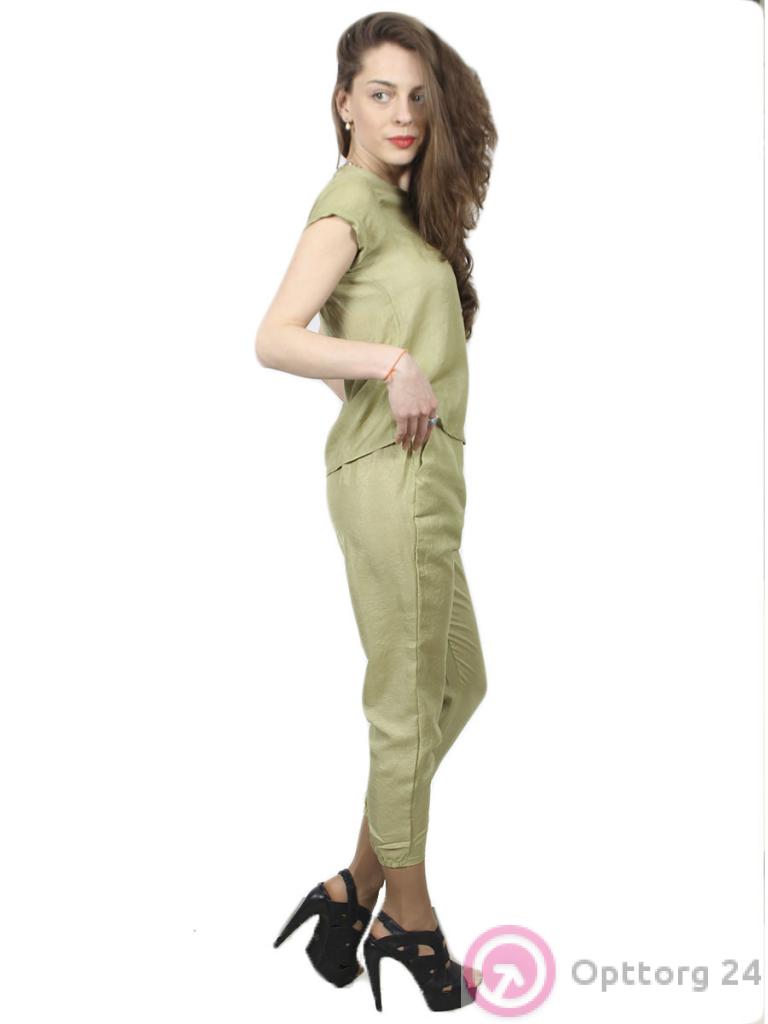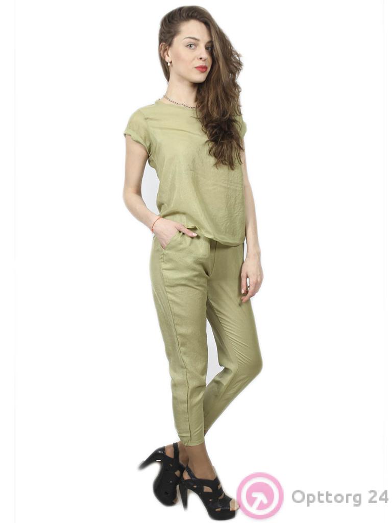 Женский стильный костюм футболка+ штаны оливкового цвета с карманами.